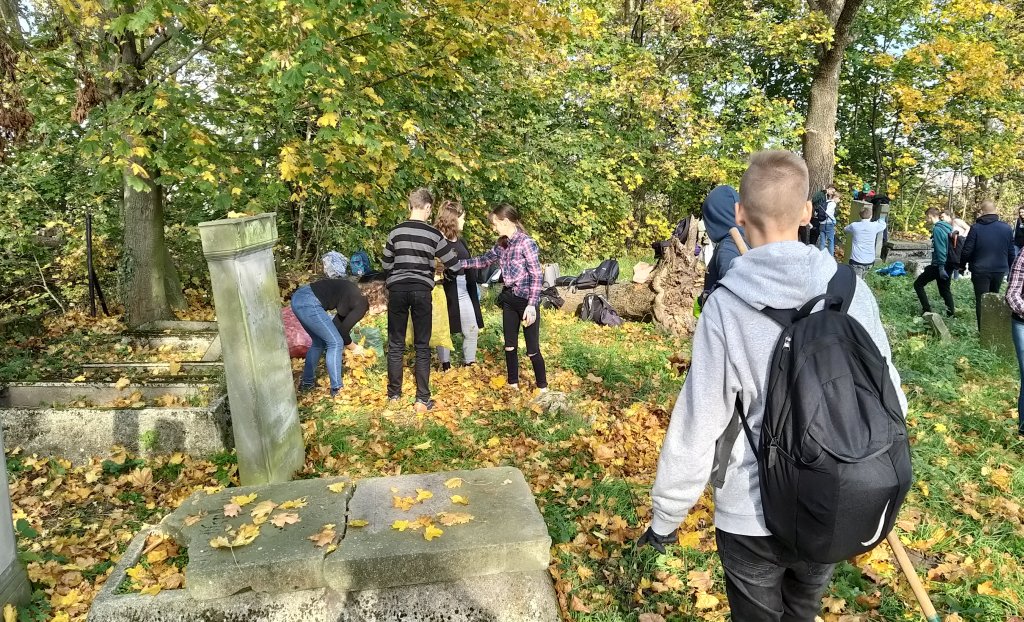 21 października uczniowie ruszyli na cmentarz zaopatrzeni w grabie, motyczki, rękawice i worki na śmieci. Pracy było sporo, ale sprzyjała jej piękna słoneczna pogoda. Nagrobki zostały oczyszczone z liści, zarastających je chwastów i pokrzyw. Podczas pracy uczniowie śledzili napisy na macewach, usłyszeli informacje na temat historii i kultury ludności żydowskiej, którą przeszłość związała z Pasłękiem.