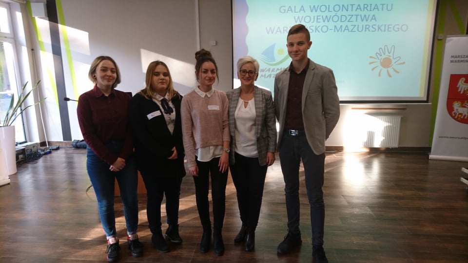 Niosą bezinteresowną pomoc wszędzie tam, gdzie potrzeba wsparcia, są opiekuńczy i wrażliwi. Mowa o wolontariuszach, którzy 5 grudnia obchodzą swoje święto– Międzynarodowy Dzień Wolontariusza. Z tej okazji 06.12.2019 roku, w Olsztynie, odbyła się Gala Wolontariatu Województwa Warmińsko-Mazurskiego, podczas której wręczono nagrody w konkursie „Barwy Wolontariatu”. Zdaniem prezes Regionalnego Centrum Wolontariatu w Elblągu, Gabrieli Zimirowskiej, każdy może pomagać. W tej pracy potrzebne są: dobre chęci, umiejętności i doświadczenie. Tych cech nie brakuje naszym wolontariuszom, którzy otrzymali nominacje, a wśród nich znaleźli się: Patrycja Szymanek z klasy III a, Aleksandra Lipińska z klasy III a , Łukasz Wróbel z klasy III b, Patrycja Wojnicz z klasy II a i Mateusz Krasiński z klasy II a. Wszyscy uczestnicy konkursu, którzy pojawili się na gali otrzymali z rąk marszałka Gustawa Marka Brzezina dyplomy oraz upominki. Gala organizowana jest po to, by podziękować i pokazać, jak ważne jest zaangażowanie i serce w pracy wolontariusza.