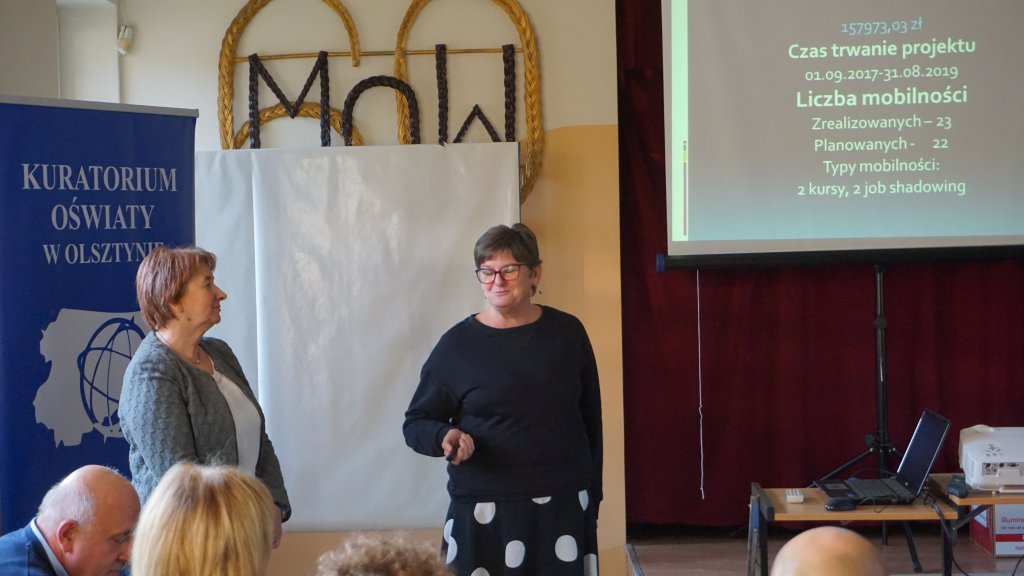 Uczestnicy konferencji dowiedzieli się jak zarządzać projektem w placówce oświatowej, wysłuchali relacji z przeprowadzonych mobilności do Wielkiej Brytanii i Hiszpanii oraz osiągniętych efektach. Ciekawy wykład o trudnym dorastaniu młodzieży przedstawiła dr Irena Sorokosz, prorektor ds. organizacyjnych Państwowej Wyższej Szkoły Zawodowej w Elblągu. Prelekcję o synergii programów Erasmus plus i PO WER przedstawiła Maria Chodakowska-Malkiewicz, konsultant ds. języka angielskiego i europejskich programów edukacyjnych Warmińsko-Mazurskiego Ośrodka Doskonalenia Nauczycieli w Elblągu.