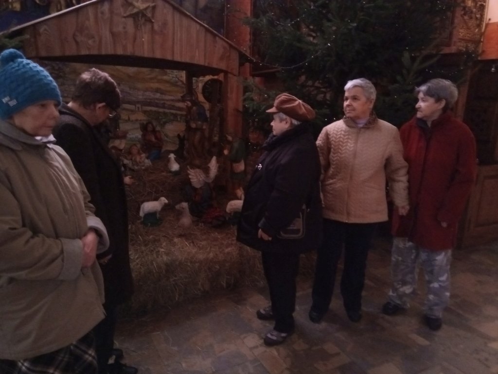 Tajemniczy klimat, jaki panuje w okresie bożonarodzeniowym udzielił się naszym paniom. Podczas oglądania szopki były bardzo skupione i zainteresowane jej postaciami. Po wyjściu z Katedry i krótkim spacerze po Starówce udaliśmy się do Ratusza Staromiejskiego, gdzie obejrzeliśmy makietę zabudowy Starego Miasta oraz fotografie niektórych ulic sprzed II wojny światowej. Panie zwróciły szczególną uwagę na charakter budowli, a szczególnie piękne kamienice.