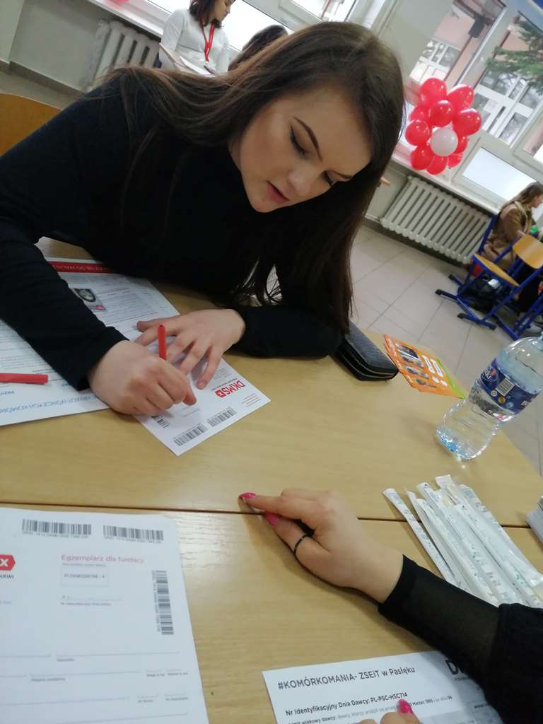 W tym roku Zespół Szkół Ekonomicznych i Technicznych w Pasłęku po raz kolejny wziął udział w akcji KOMÓRKOMANIA organizowanej razem z fundacją DKMS, która nawołuje do zaoferowania niewielkiej cząstki siebie, czyli komórek swojego ciała, aby uratować komuś życie.
