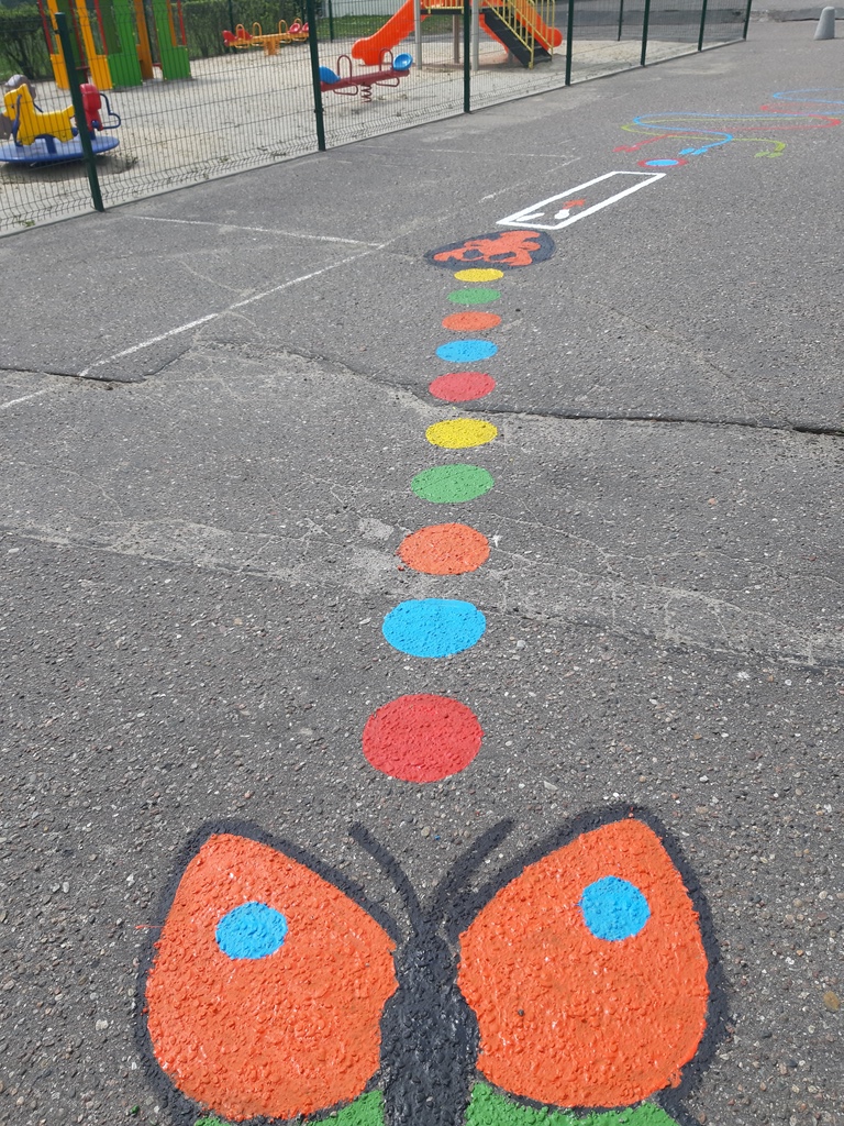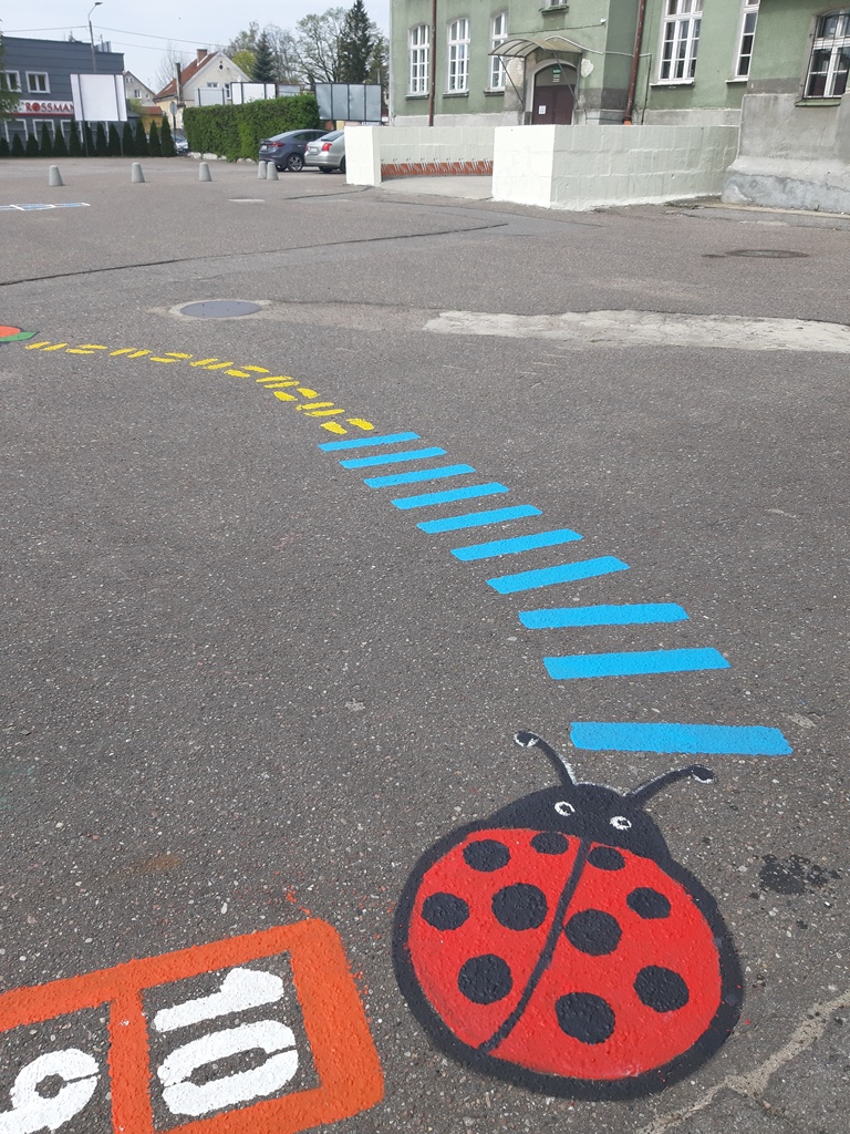 „Od kiedy Gimnazjum nr 1 im. Władysława Jagiełły w Pasłęku zostało Szkołą Podstawową nr 1 w Pasłęku staramy się bardzo oswoić mury szkolne, klasy, korytarze, aby były atrakcyjne dla naszych najmłodszych uczniów oraz dla naszych przedszkolaków. W czasie pandemii koronawirusa, w oczekiwaniu na naszych uczniów (niestety, bez ich udziału) postanowiliśmy "dokończyć" jedno z zadań grupy projektowej „SAMA”, „Gram bez prądu” i wymalować na szkolnym parkingu (byłym parkingu) ścieżki gier podwórkowych. Przed lekcjami, po lekcjach, na przerwach nasze dzieci, nie tylko te najmłodsze, będą mogły się bawić, skakać, doskonalić swoją koordynację ruchową i nie tylko!”