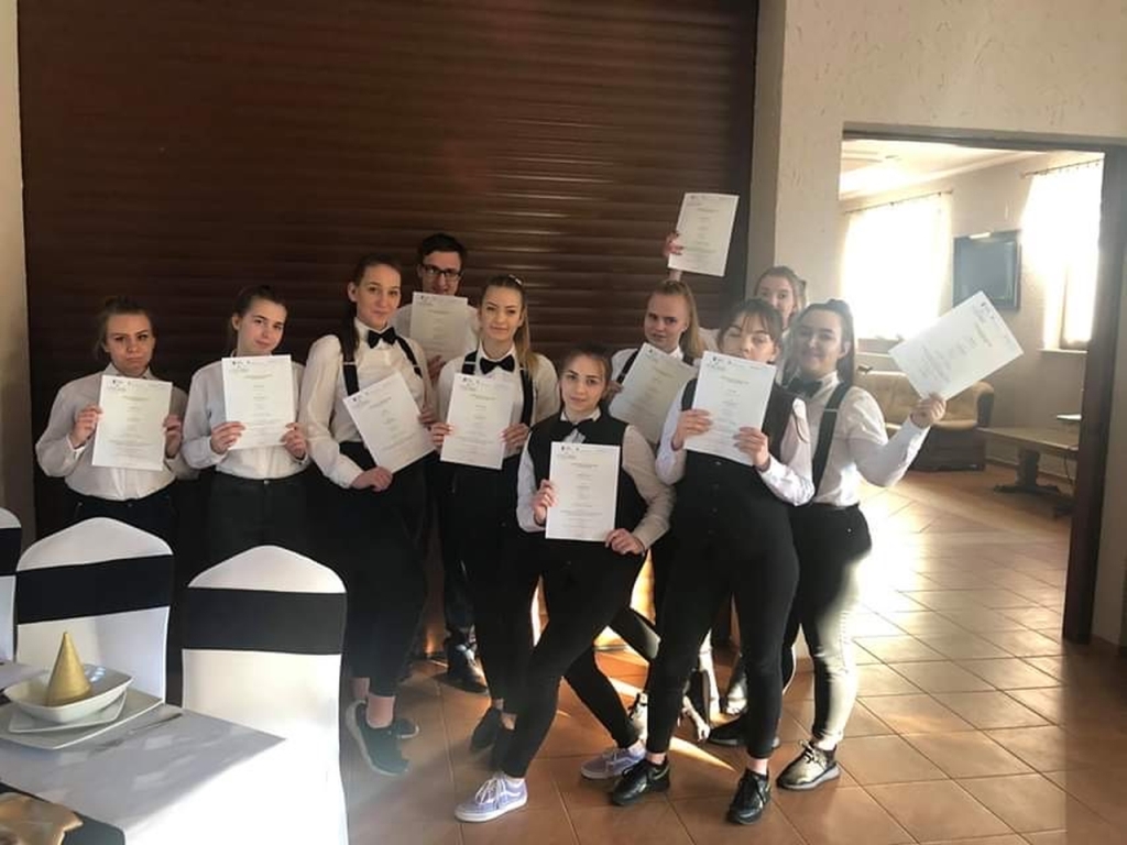 W Zespole Szkół Ekonomicznych i Technicznych w Pasłęku zakończyły się kursy zawodowe dla branży gastronomicznej zorganizowane w ramach projektu "Nowe kwalifikacje ucznia atutem przyszłego pracownika edycja II” na podstawie umowy nr RPWM.02.04.01-28-0013/19-00 Regionalnego Programu Operacyjnego Województwa Warmińsko-Mazurskiego na lata 2014-2020, poddziałanie 2.4.1 Rozwój kształcenia i szkolenia zawodowego-projekty konkursowe.