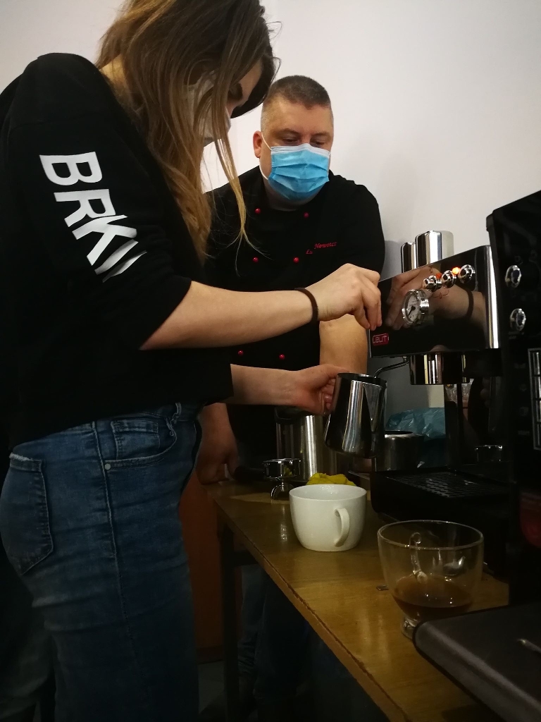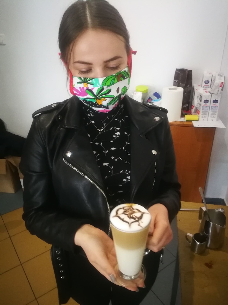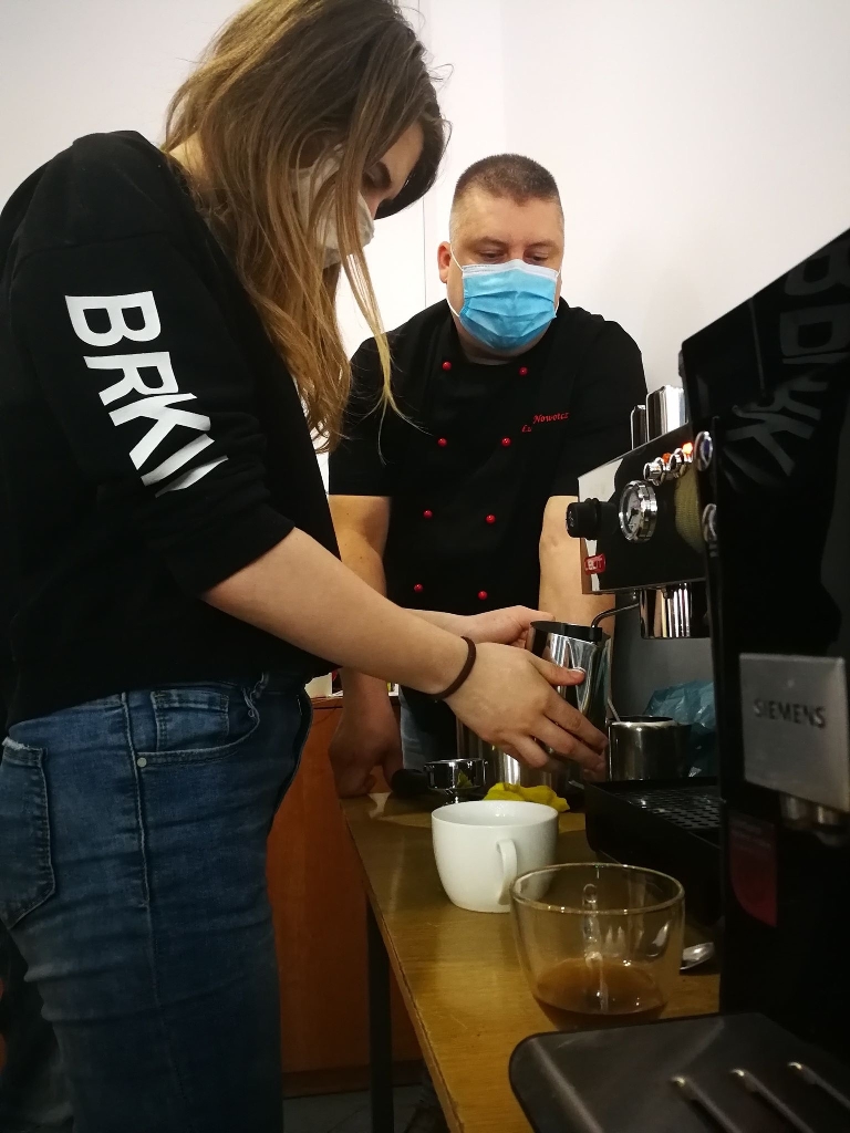 Drugi kurs - baristy, odbył się w maju 2020 r. Uczniowie zdobyli wiedzę teoretyczną i praktyczną dotyczącą kawy, jej obróbki, przyrządzania różnego rodzaju kawy oraz kawowych drinków, a także wykonywania na ich powierzchni kunsztownych wzorów.