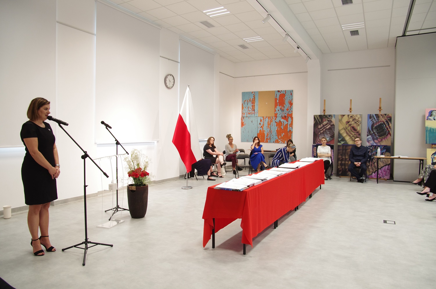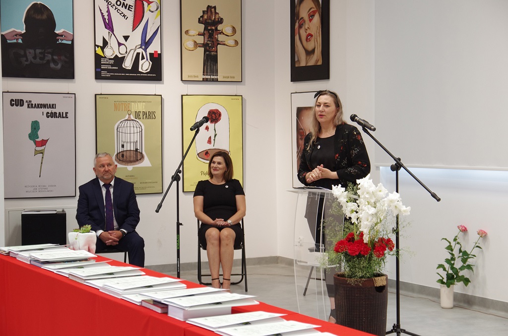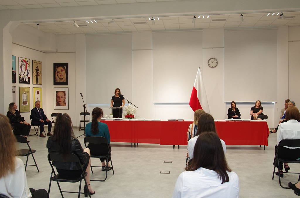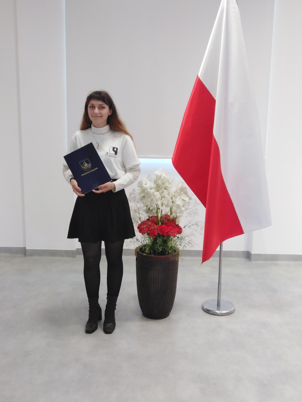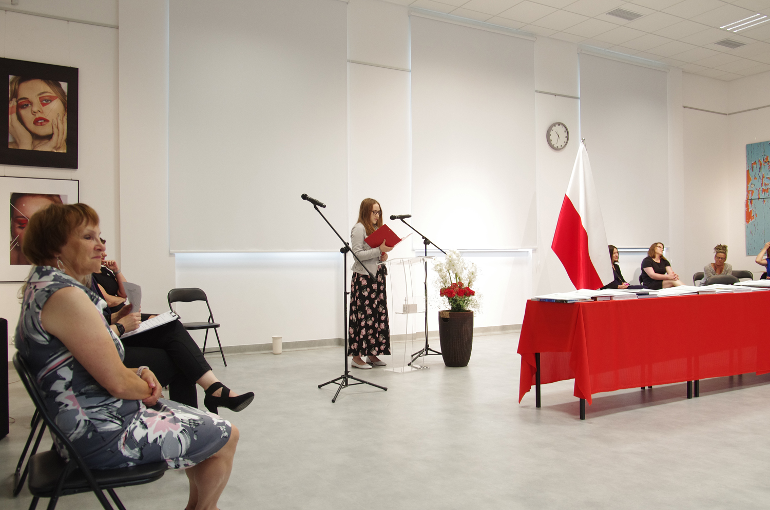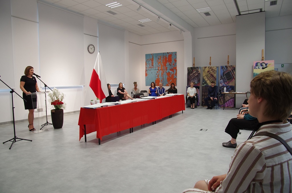 Następnie głos zabrał starosta elbląski Maciej Romanowski. Gratulował młodzieży osiągniętych wyników w nauce i podejmowania twórczych działań. Apelował o odwagę w ustanawianiu nowych wyzwań, gdyż dają one radość, przyjemność i satysfakcję. Życzył również bezpiecznych i spokojnych wakacji. Po kilku ciepłych słowach, skierowanych do młodzieży i nauczycieli, wręczył absolwentce Liceum Sztuk Plastycznych, Elżbiecie Krajewskiej stypendium w kategorii Uczeń z pasją i talentem. Wyróżnienie to przyznawane jest uczniom, którzy osiągnęli bardzo wysokie wyniki w nauce, a także zdobyli premiowane miejsce w olimpiadach, konkursach, turniejach przedmiotowych i artystycznych.