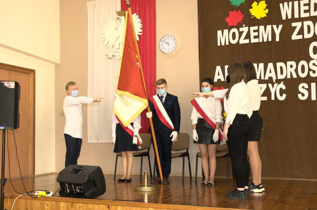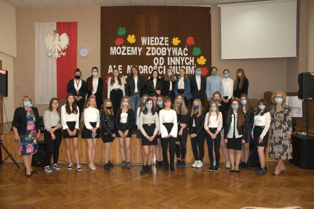 Pani dyrektor, Elżbieta Wasiuk, wychowawcy i samorząd oficjalnie przyjęli pierwszoklasistów do grona uczniów Zespołu Szkół, życząc im tego, by szkoła nie była tylko źródłem wiedzy i zdobywania nowych umiejętności, ale także „drugim domem”, w którym zawsze będą czuli się bezpiecznie.