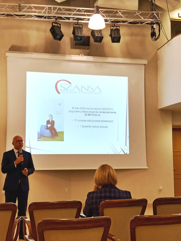 Na uroczystości Powiat Elbląski reprezentowała pani Wioletta Janas – naczelnik Wydziału Promocji, Edukacji, Kultury i Sportu Starostwa Powiatowego w Elblągu, która wręczyła pięciu uczniom umowy stypendialne.