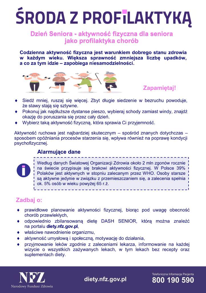 Codzienna aktywność fizyczna jest warunkiem dobrego stanu zdrowia w każdym wieku. Większa sprawność zmniejsza liczbę upadków, a co za tym idzie – zapobiega niesamodzielności.