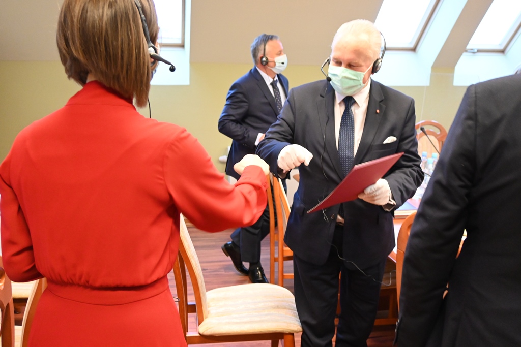 Z rąk Prezesa Oddziału ZNP w Elblągu Gerarda Przybylskiego odznaki otrzymali: Marszałek Województwa Warmińsko-Mazurskiego Gustaw Marek Brzezin, Starosta Elbląski Maciej Romanowski i Przewodnicząca Rady Powiatu w Elblągu Genowefa Kwoczek.