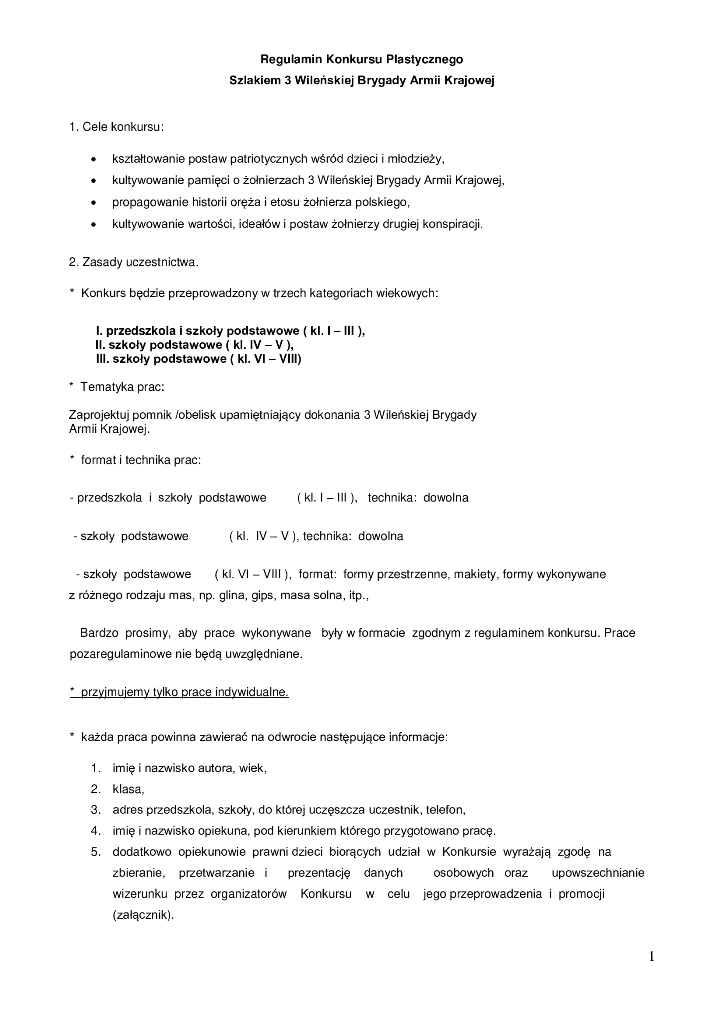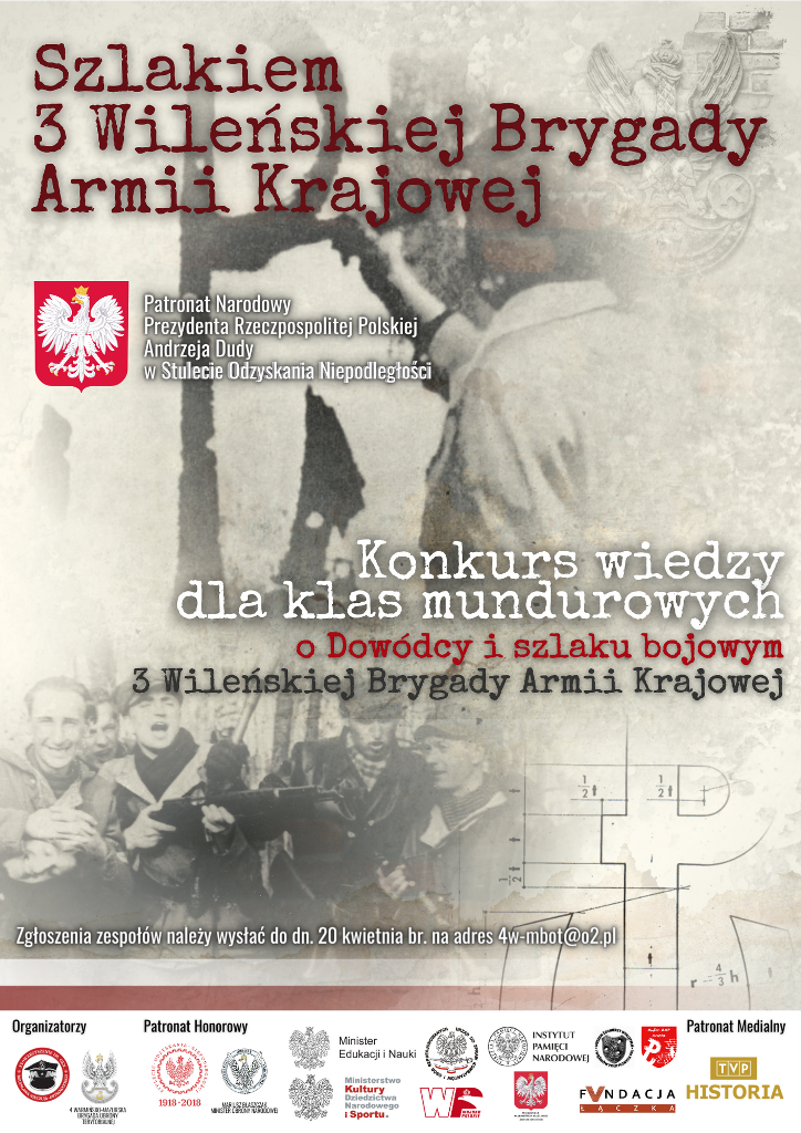 Zapraszamy przedszkola, szkoły podstawowe i klasy mundurowe do wzięcia udziału w konkursie „Szlakiem 3 Wileńskiej Bygady Armii Krajowej”, którego celem jest kształtowanie postaw patriotycznych wśród dzieci i młodzieży.