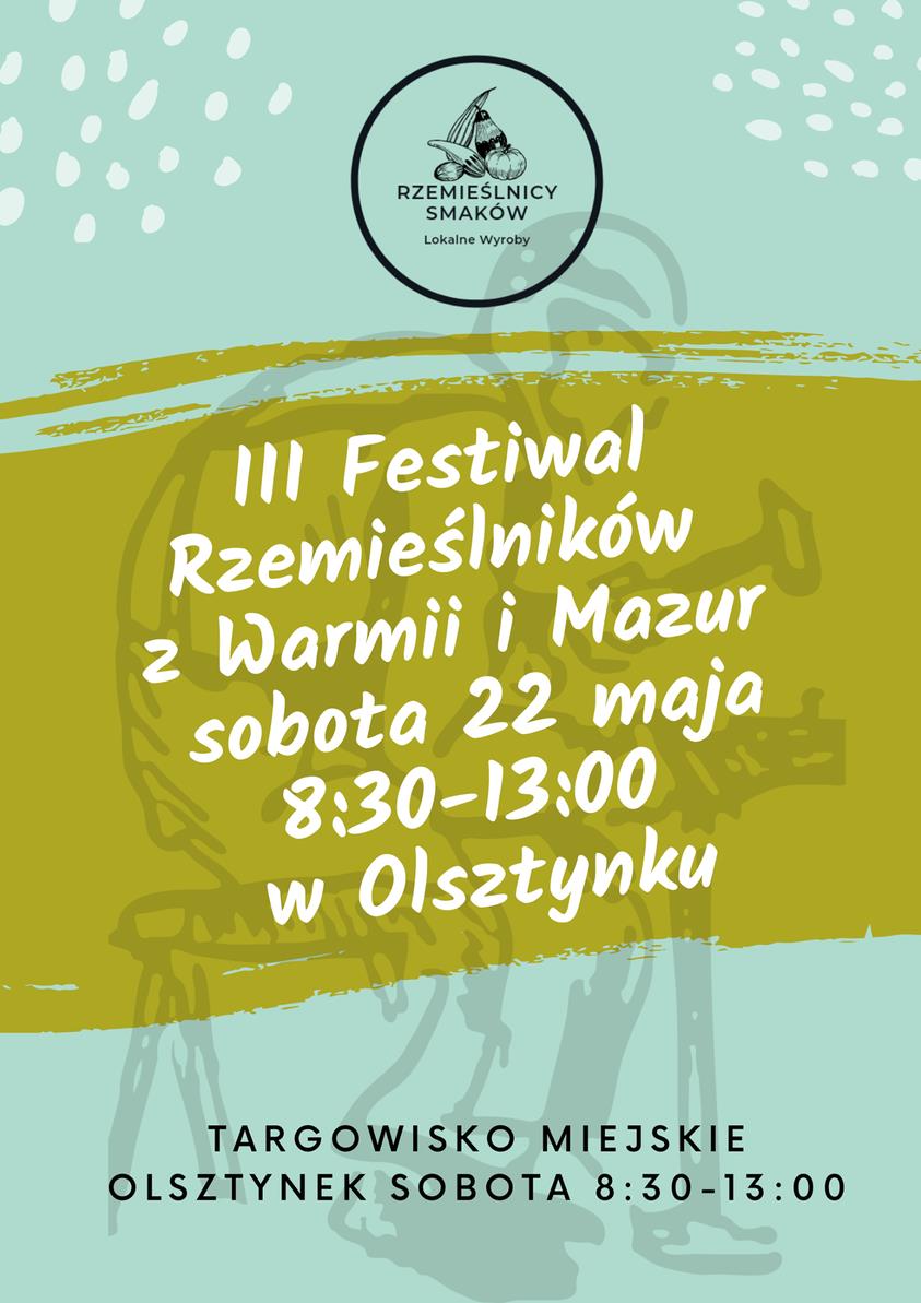 III Festiwal Rzemieślników Warmii i Mazur , który odbędzie się, na Targowisku Miejskim