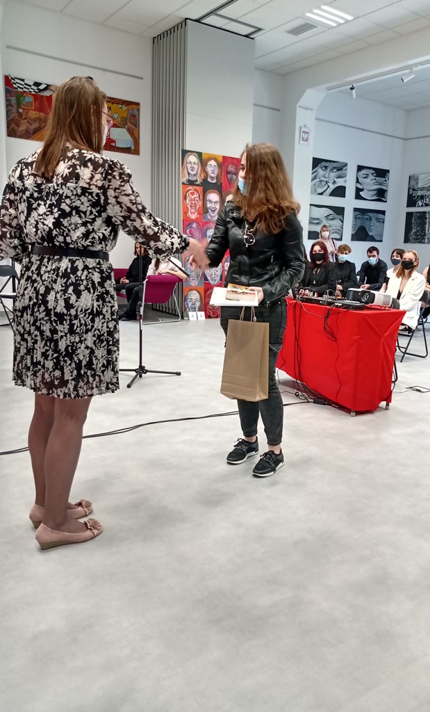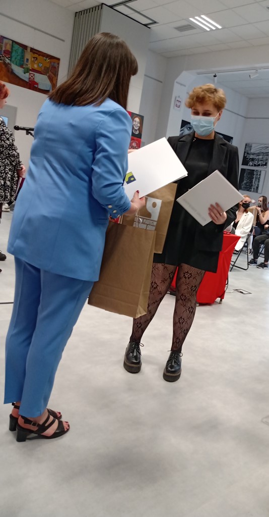 W imieniu Starosty Elbląskiego, Pan Ryszard Zając – Wicestarosta Elbląski pogratulował młodzieży osiągniętych wyników w nauce i podejmowania twórczych działań. Po kilku ciepłych słowach, skierowanych do młodzieży i nauczycieli, wręczył dwa stypendia Starosty Elbląskiego dla absolwentek Liceum Sztuk Plastycznych. Uczennica Aleksandra Kozieł uzyskała na świadectwie ukończenia szkoły najwyższą średnią ocen 5,56 i otrzymała stypendium w kategorii „Prymus Szkoły”. Stypendium w kategorii „Najlepszy uczeń” otrzymała Dominika Sambor, która na świadectwie szkolnym uzyskała wysoką średnią ocen 5,68. Pan Wicestarosta wręczył obu uczennicom listy gratulacyjne oraz drobne upominki.
