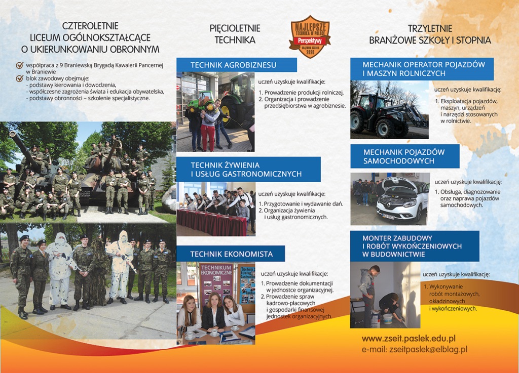 Zapraszamy do odwiedzania strony szkoły: https://www.zseit.paslek.edu.pl i śledzenia oficjalnego profilu szkoły na facebooku.