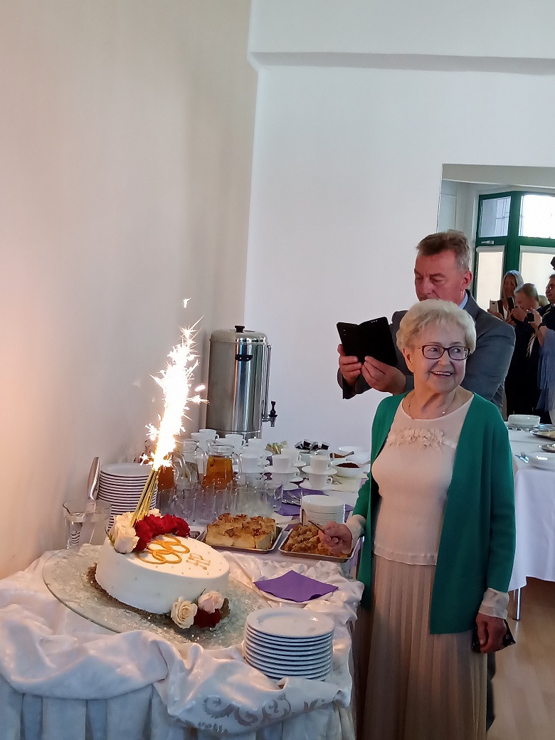 Obchody rozpoczęły się odśpiewaniem hymnu narodowego przy akompaniamencie orkiestry wojskowej. Następnie Pan Adam Krzesiński, Sekretarz Generalny Polskiego Komitetu Olimpijskiego, wręczył Pani Helenie Pilejczyk medal 100-lecia Polskiego Komitetu Olimpijskiego za godnie reprezentowanie Polski w zawodach sportowych. Przewodnicząca Rady Powiatu w Elblągu wraz z Naczelnikiem Wydziału PEKS wręczyły jubilatce kwiaty, pamiątkowy album oraz list gratulacyjny.