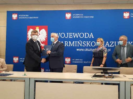 Dziś, 28 czerwca, w Olsztynie Pan Maciej Romanowski Starosta Elbląski wraz z Panem Ryszardem Zającem Wicestarostą Elbląskim i Panią Sabiną Knifką Naczelnik Wydziału Finansowego (działającej z up. Skarbnika Powiatu) podpisali umowę z Wojewodą Warmińsko-Mazurskim Panem Arturem Chojeckim o dopłatę w formie dofinansowania zadań własnych organizatorów w zakresie przewozów autobusowych o charakterze użyteczności publicznej.