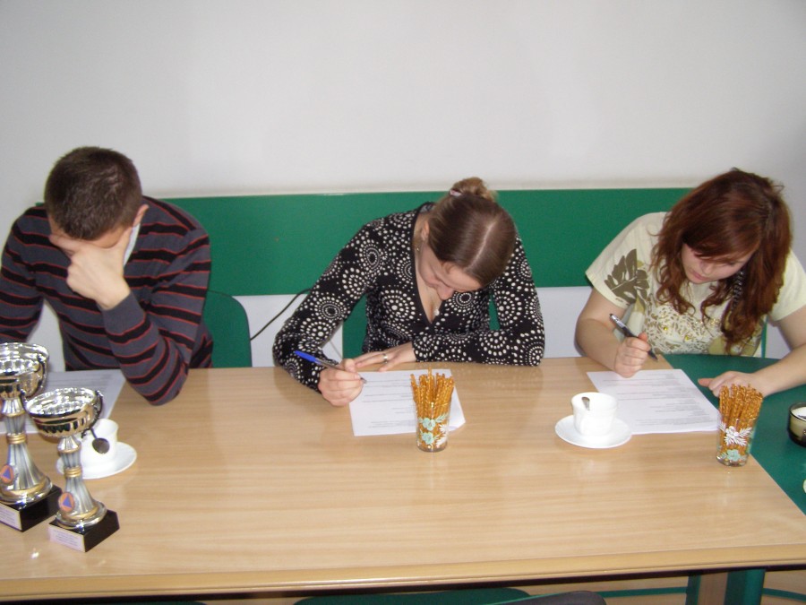 Zwycięski zespół w składzie: Magdalena Suchodolska i Damian Dańczyszyn przygotował nauczyciel Tadeusz Gębarowski. Każdy uczestnik olimpiady dostał do rozwiązania 50 pytań testowych. Łączna suma punktów uczestników z tej samej drużyny decydowała o jej zwycięstwie.