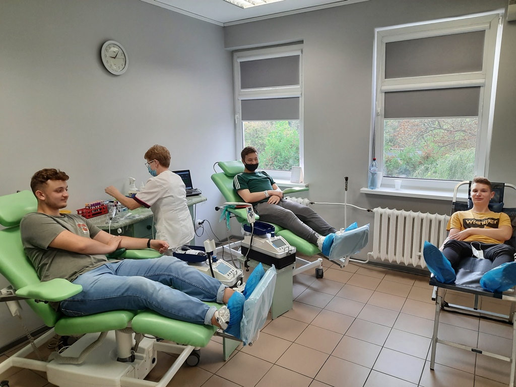 W środę 6 października pełnoletni uczniowie klas maturalnych wzięli udział w Akcji Honorowego Krwiodawstwa. To już szesnasta edycja organizowana przez Zespół Szkół w Pasłęku. Chęć oddania krwi w pasłęckiej Placówce RCKiK zadeklarowało 26 uczniów. Do donacji zakwalifikowano 21 uczniów, którzy oddali łącznie niemal 10 litrów krwi pełnej. Niezmiernie cieszy nas fakt, że jest tylu chętnych wolontariuszy, którzy swoim darem przyczyniają się do ratowania ludzkiego życia. Jesteśmy również dumni z wielu naszych absolwentów oraz pracowników, którzy często odwiedzają Placówkę RCKiK w Pasłęku. Podziękowania kierujemy na ręce pani Elżbiety Zielińskiej, pani Beaty Misztal i pani doktor Izabeli Cieszyńskiej za profesjonalizm, pomoc i jak zawsze miłą atmosferę.