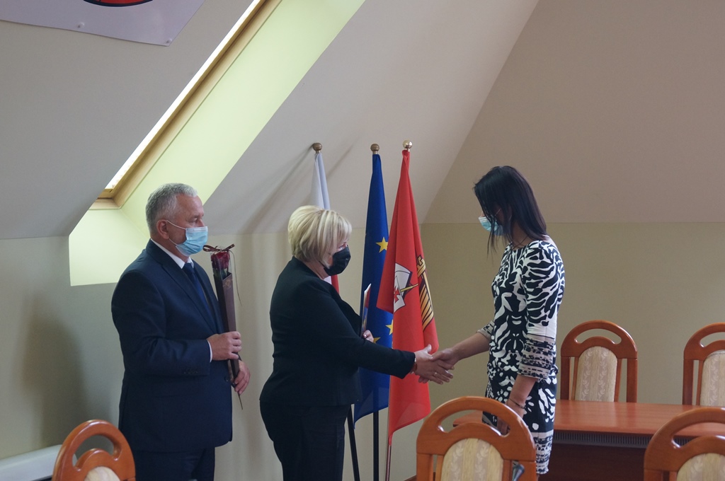 W dniu 15 października 2021 r. Pan Maciej Romanowski – Starosta Elbląski i Pani Genowefa Kwoczek – Przewodnicząca Rady Powiatu w Elblągu wręczyli pięciu nauczycielom doroczne nagrody Starosty Elbląskiego z okazji Dnia Edukacji Narodowej.