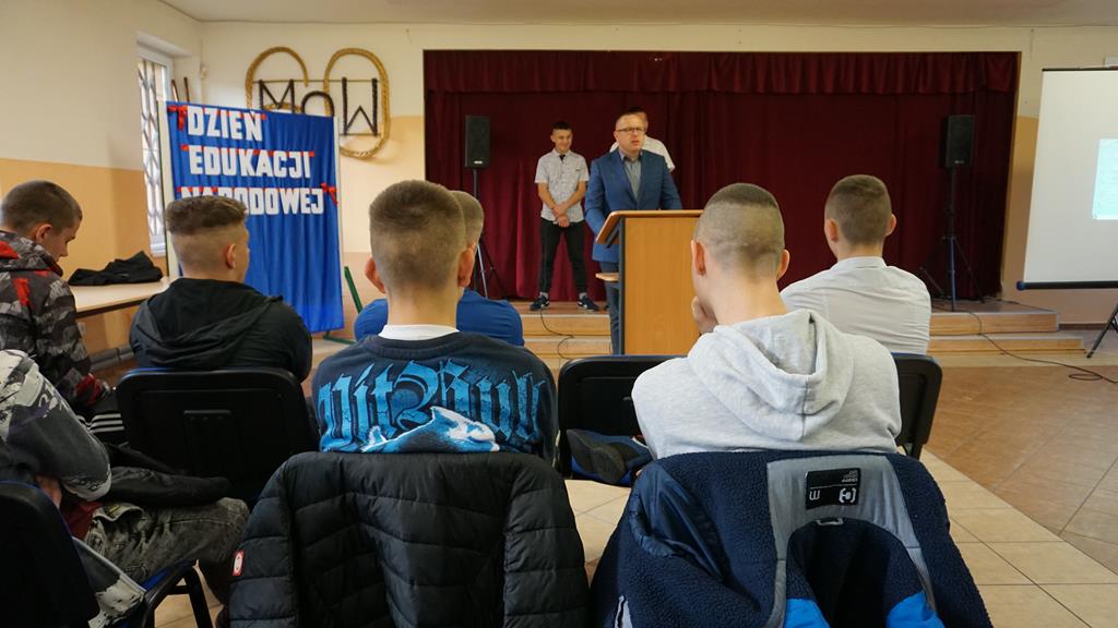 W czwartek 14 października w auli naszego ośrodka odbyła się uroczysta akademia z okazji Dnia Edukacji Narodowej. Rozpoczął ją występ zespołu muzycznego Basior Squad. Kacper i Mateusz zaśpiewali skomponowane i napisane przez siebie utwory. Wszystkim zebranym bardzo podobał się występ. Zespół muzyczny zebrał gromkie oklaski. Nauczyciele i pracownicy w ramach podziękowań za trud wkładany w edukację i wychowanie wychowanków otrzymali wyróżnienia od pana Dyrektora Sławomira Żukowskiego. Uczniowie wręczyli wykonane przez siebie laurki. Wszyscy zebrani wspólnie bawili się rozwiązując zagadki psychologiczne, które wywołały wiele uśmiechów na twarzach. Do końca dnia panował wesoły nastrój, bo w tym dniu nie było lekcji ani zajęć dydaktycznych.