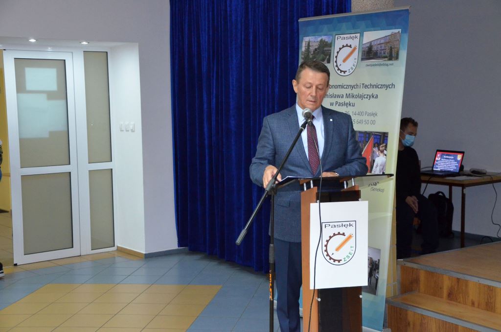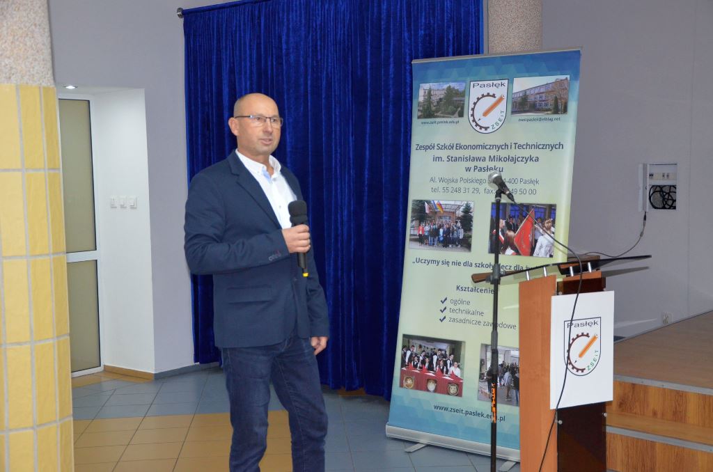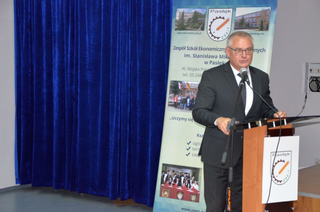 Zaproszonych gości przywitał dyrektor Zespołu Szkół Ekonomicznych i Technicznych w Pasłęku Marian Matuszczak. W dalszej części wystąpienia omówił cele i sposoby realizacji kształcenia zawodowego w szkole, działania zmierzające do podnoszenia kompetencji uczniów oraz mierzalne efekty tych działań, strategiczne znaczenie kształcenia zawodowego w zakładach pracy, współpracę szkoły z pracodawcami. Na zakończenie dyrektor podkreślił znaczenie udziału uczniów w stażach i praktykach zawodowych w kraju oraz poza granicami, konieczność rozwijania zaplecza technicznego i dydaktycznego w szkole oraz kluczową rolę szkoły w nabywaniu nowych umiejętności przez uczniów jako cel najważniejszy.