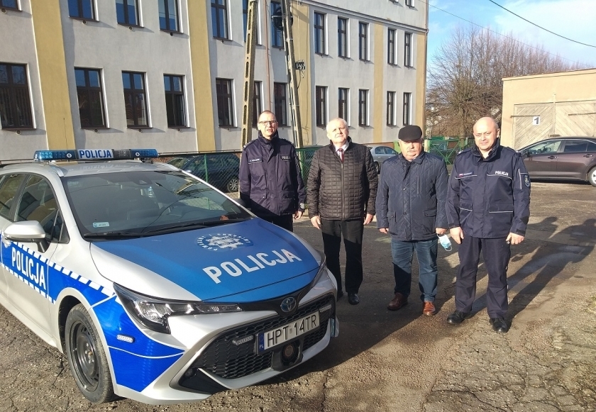 Przed budynkiem Komisariatu Policji w Pasłęku przekazano dziś na ręce insp. Roberta Muraszko Komendanta Miejskiego Policji w Elblągu kluczyki do nowej hybrydowej toyoty. To już drugie takie auto zasilające elbląski garnizon. Nowy radiowóz trafił do Komisariatu Policji w Pasłęku.