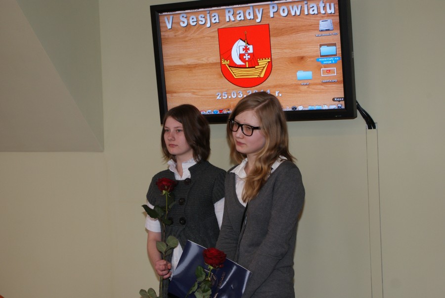 Wicestarosta Maciej Romanowski wręczył także listy gratulacyjne i drobne upominki uczestniczkom powiatowego etapu konkursu „Ośmiu wspaniałych”. Celem konkursu jest promowanie pozytywnych zachowań, postaw dzieci i młodzieży oraz upowszechnianie młodzieżowego wolontariatu. W tym roku wyróżnione zostały Anita Jędrzejewska - uczennica II klasy Gimnazjum w Tolkmicku, uczennica III klasy Gimnazjum w Stankowie.