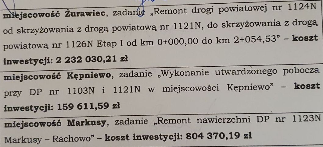 W czwartek 9 grudnia br. w w miejscowości Żurawiec w gminie Markusy, odbyło się uroczyste otwarcie trzech wyremontowanych dróg powiatowych. Koszty inwestycji zostały pokryte w 65% z dofinansowania pozyskanego z Rządowego Funduszu Rozwoju Dróg , a w pozostałej części z budżetu powiatu elbląskiego i gminy Markusy.
