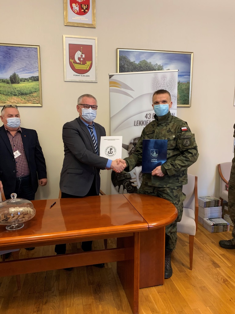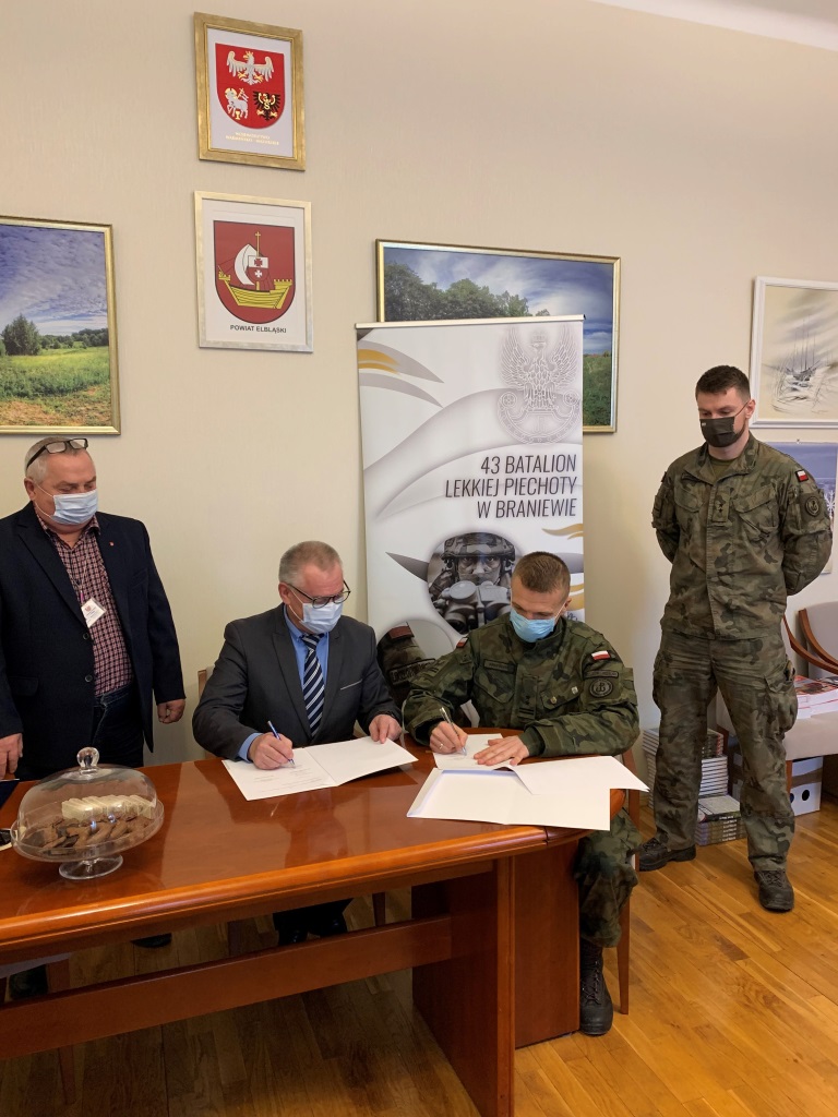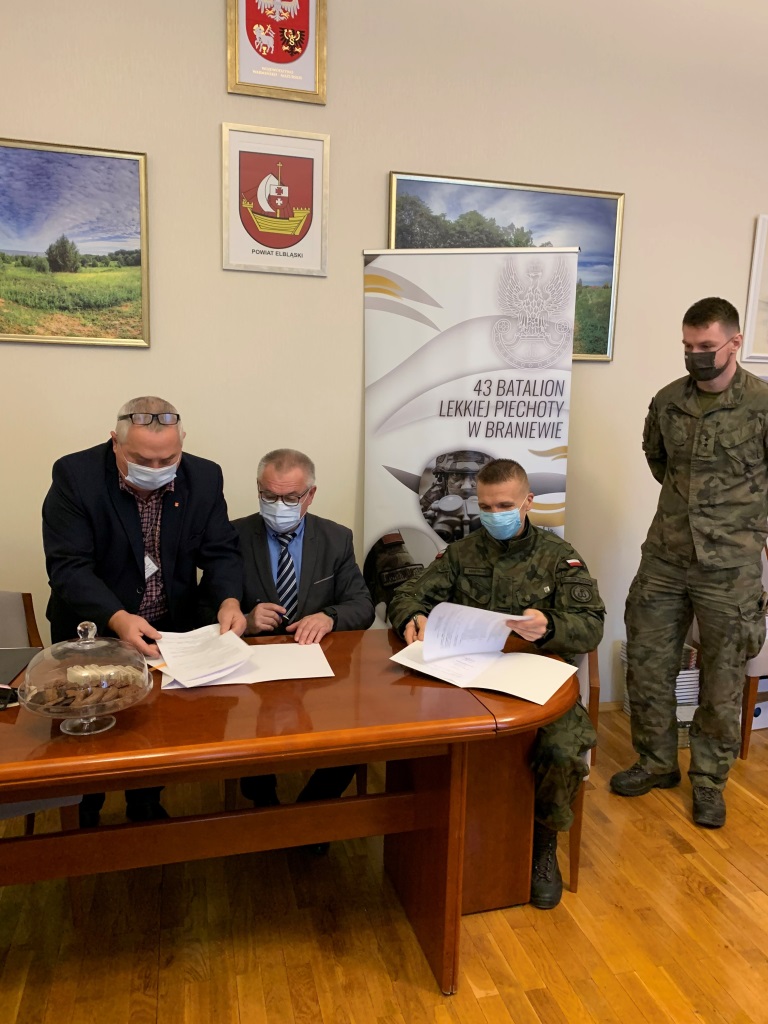 W dniu 22 lutego br. w Starostwie Powiatowym w Elblągu została podpisana notatka uzgodnień w sprawie współpracy pomiędzy 43 batalionem lekkiej piechoty 4 Warmińsko-Mazurskiej Brygady Obrony Terytorialnej im. kpt. Gracjana Klaudiusza Fróga, ps. „Szczerbiec” reprezentowanym przez Dowódcę batalionu ppłk Bogumiła Krupińskiego a Powiatem Elbląskim reprezentowanym przez Zarząd Powiatu w Elblągu w imieniu którego działają Starosta Elbląski - Maciej Romanowski i Wicestarosta – Ryszard Zając.