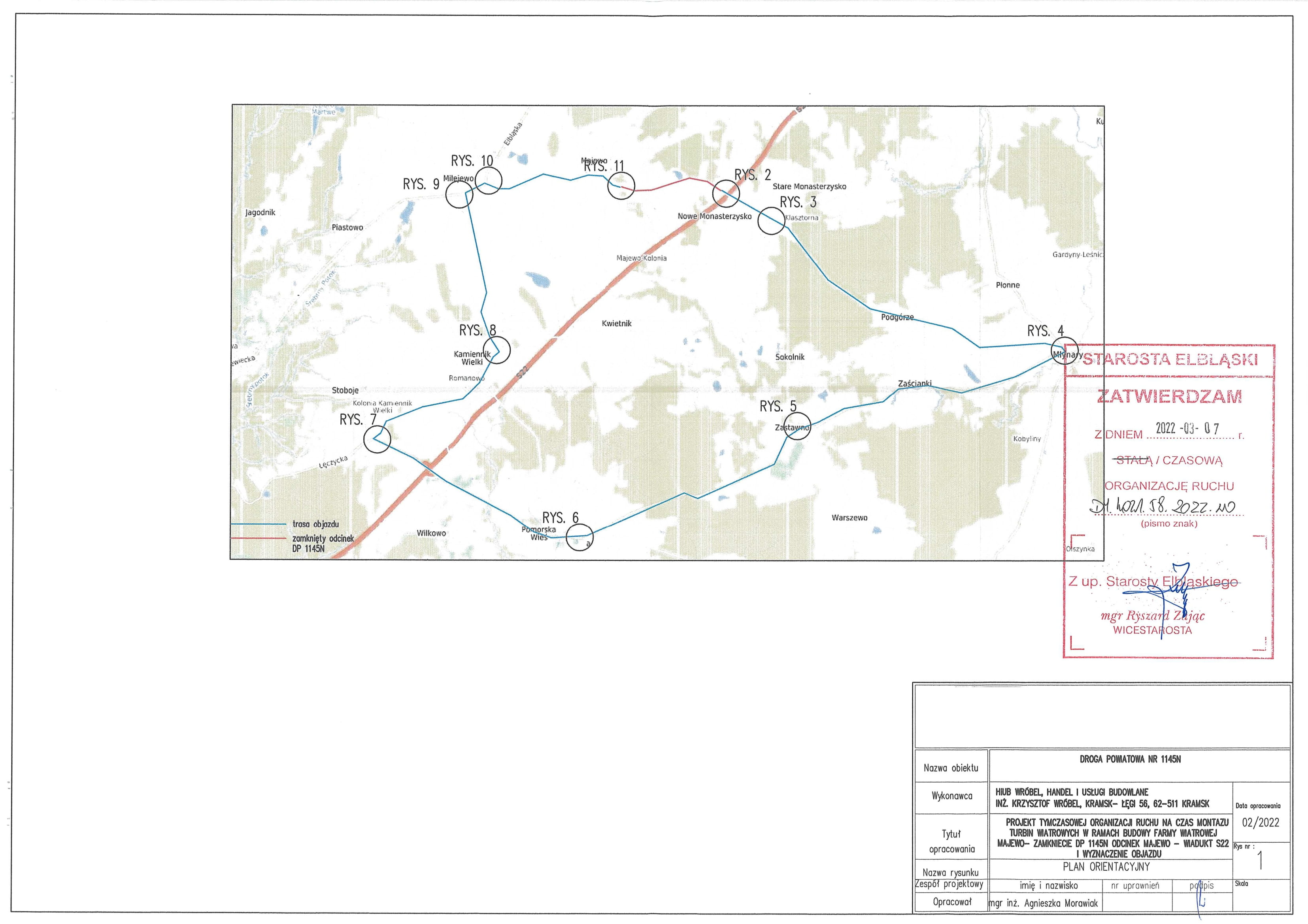 Wprowadzenie tymczasowej organizacji ruchu spowodowane jest przejazdem pojazdów nienormatywnych oraz montażem elementów turbin wiatrowych.