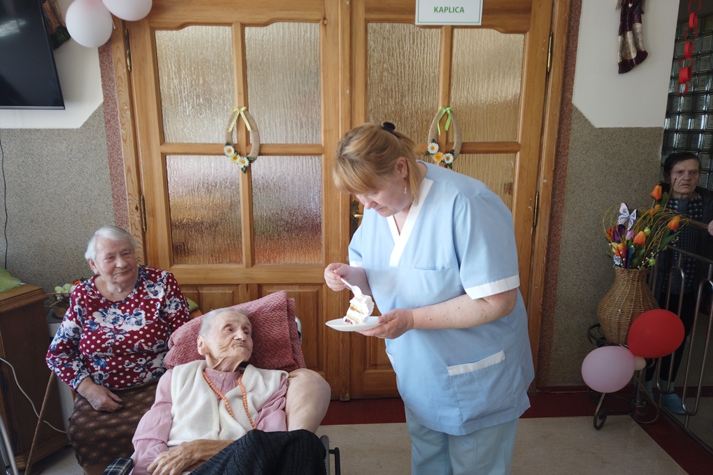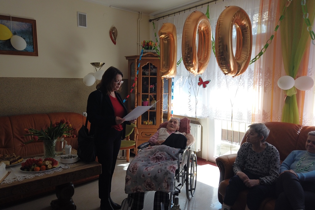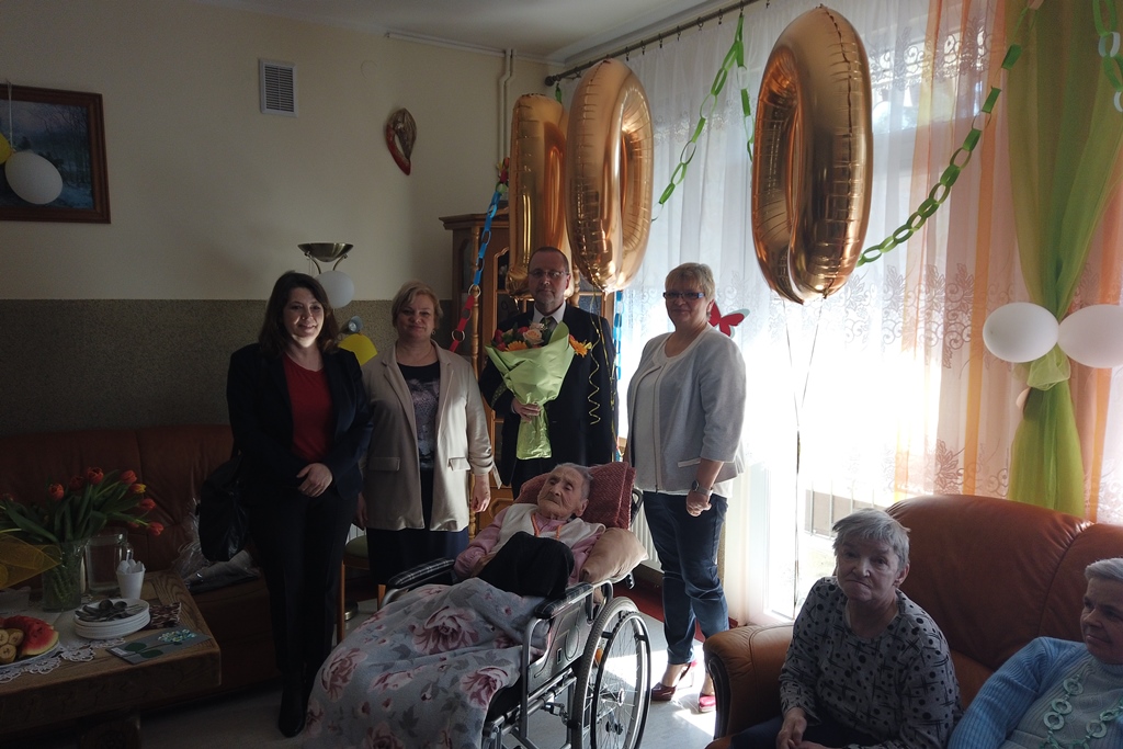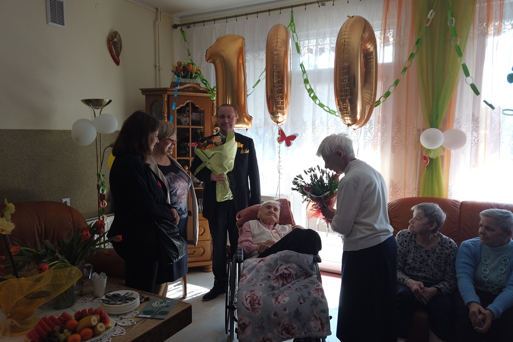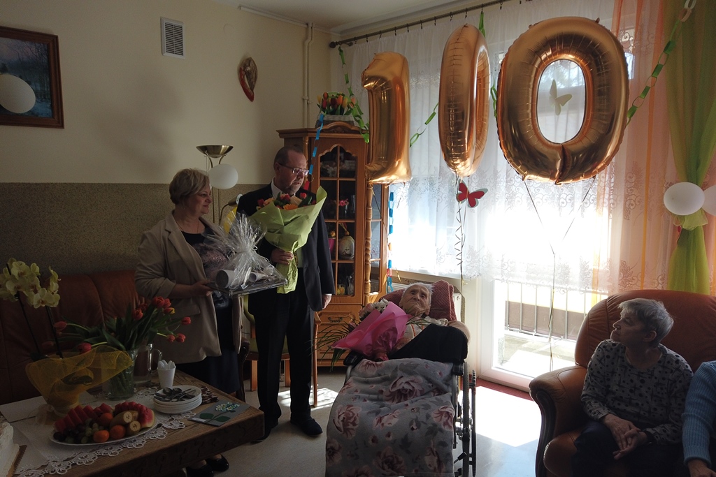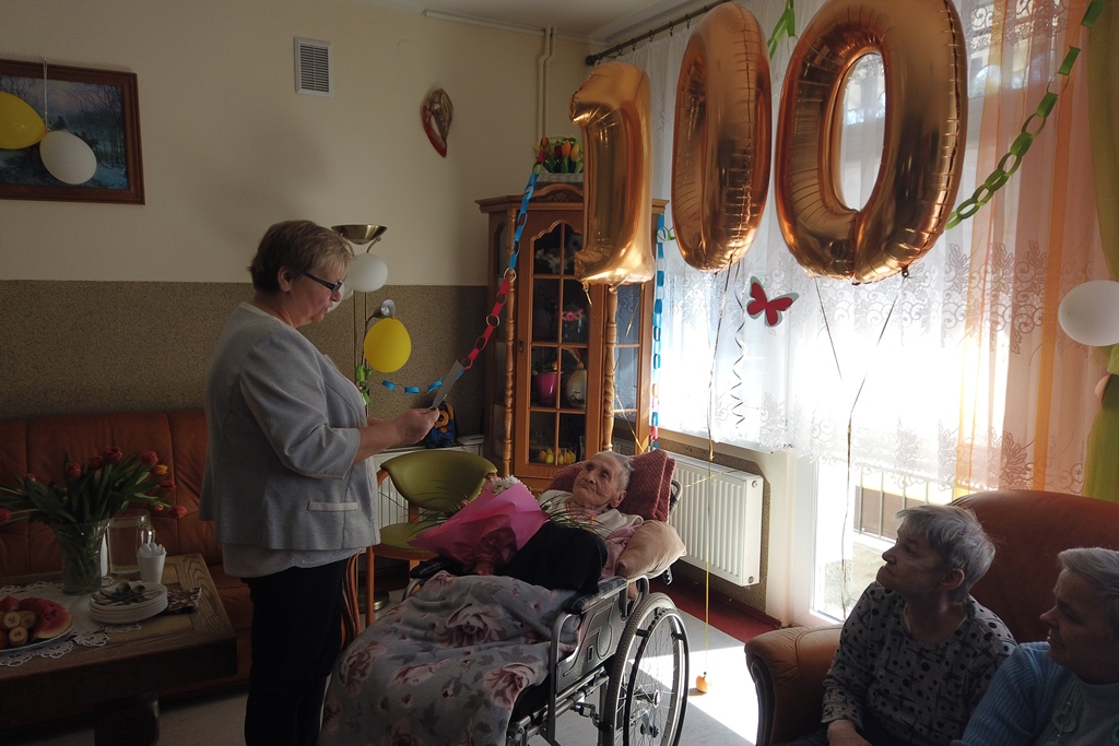 Dnia 22 kwietnia 2022 roku mieszkanka Domu Pomocy Społecznej w Tolkmicku świętowała swoje setne urodziny. Z tej okazji solenizantce życzenia złożyli Pani Anna Kurszewska Dyrektor Domu Pomocy Społecznej w Tolkmicku, Pan Tomasz Domżalski Dyrektor Powiatowego Centrum Pomocy Rodzinie w Elblągu, Pani Magdalena Dalman Burmistrz Miasta Tolkmicka oraz obecny personel opiekuńczy. Do życzeń dołączyła się również najbliższa rodzina mieszkanki.