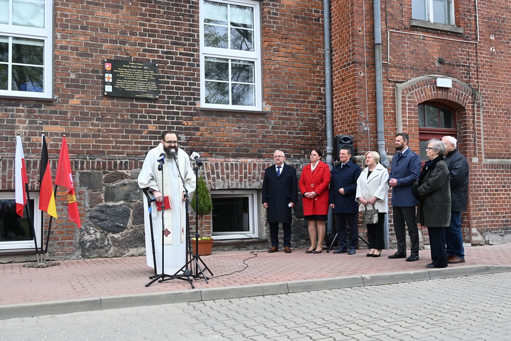 Po odsłonięciu tablicy poświęcenia jej dokonał Proboszcz Parafii Matki Bożej Nieustającej Pomocy w Drulitach ks. Jacek Dąbrowski, a wiązankę kwiatów złożył osobiście Wicewojewoda.