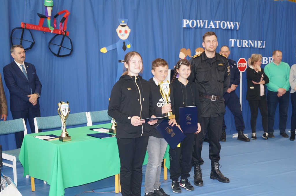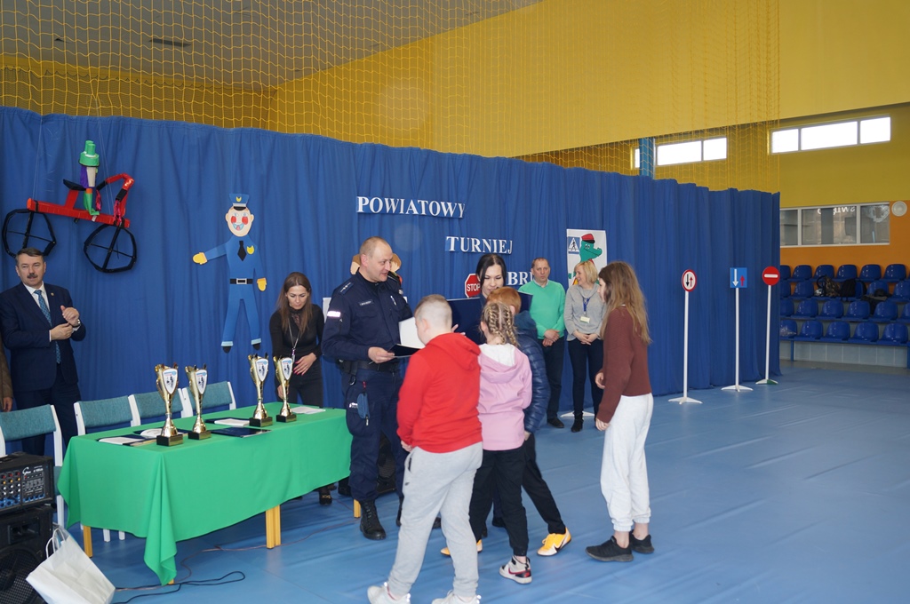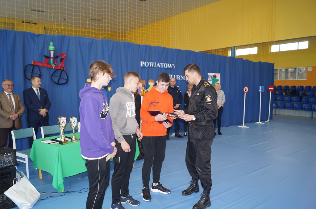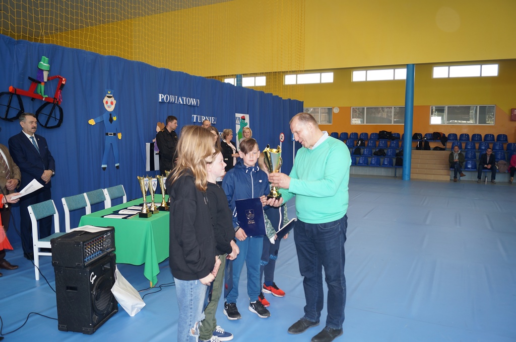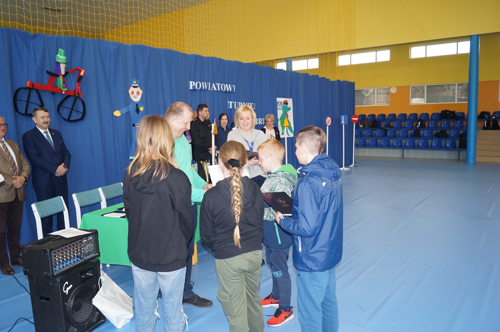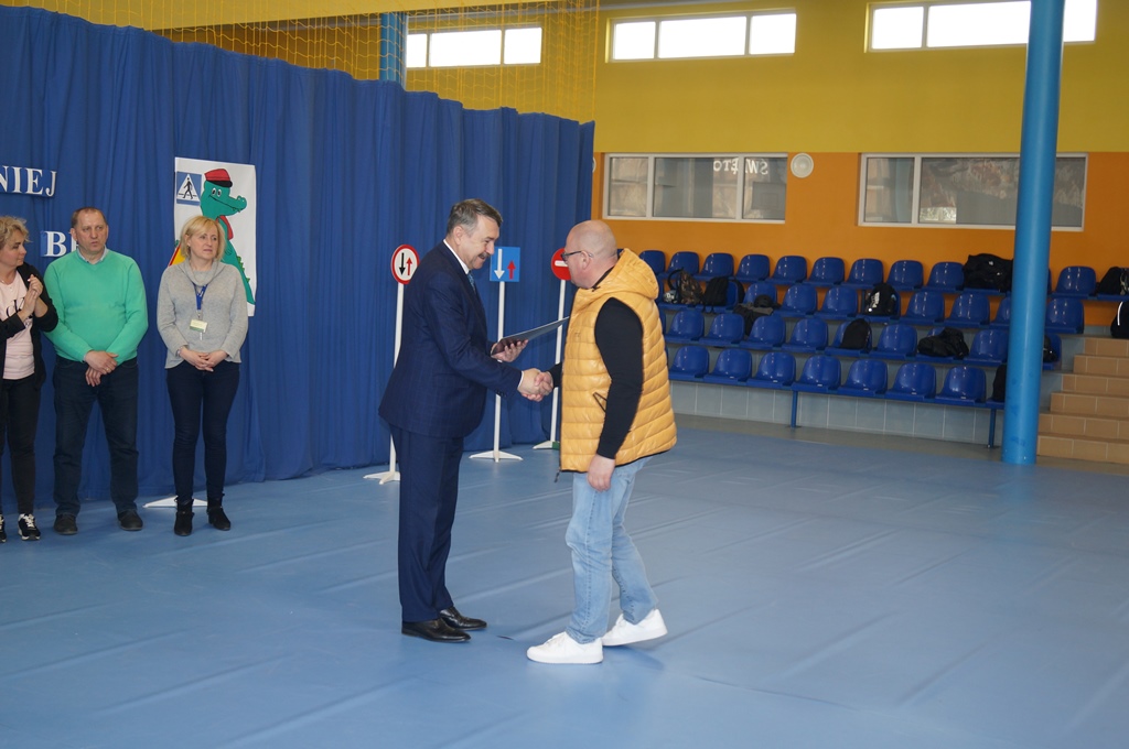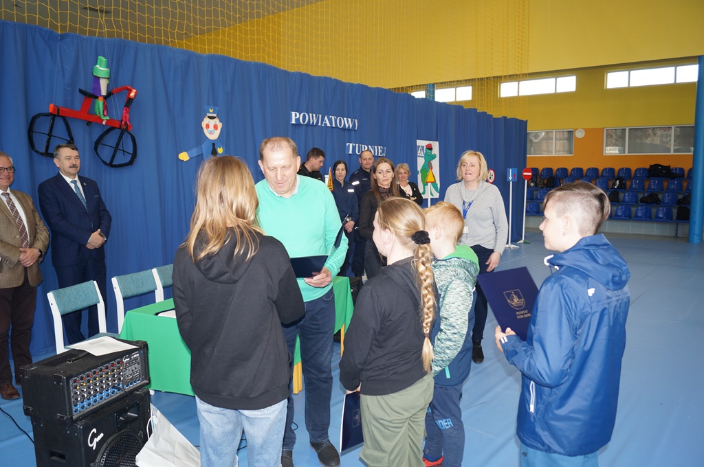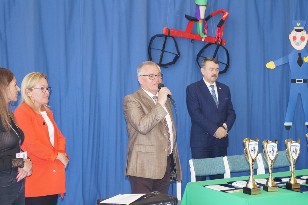 W uroczystym wręczeniu nagród uczestniczył Pan Ryszard Zając Wicestarosta Elbląski, który przekazał serdeczne podziękowania współorganizatorom Turnieju: pracownikom Wojewódzkiego Ośrodka Ruchu Drogowego w Elblągu, funkcjonariuszom Komendy Miejskiej Policji w Elblągu, strażakom Państwowej Straży Pożarnej w Elblągu oraz opiekunom grup uczestniczących w turnieju.