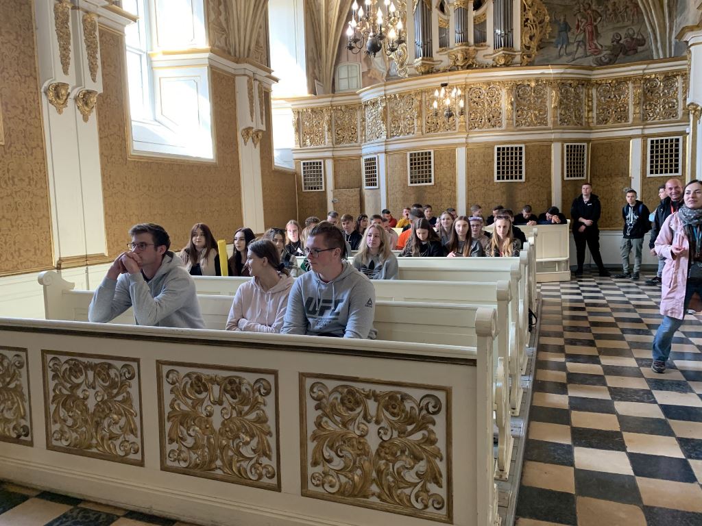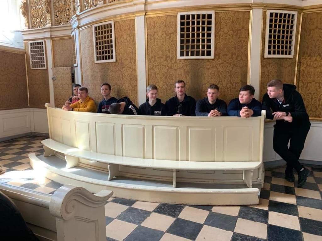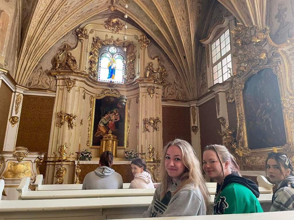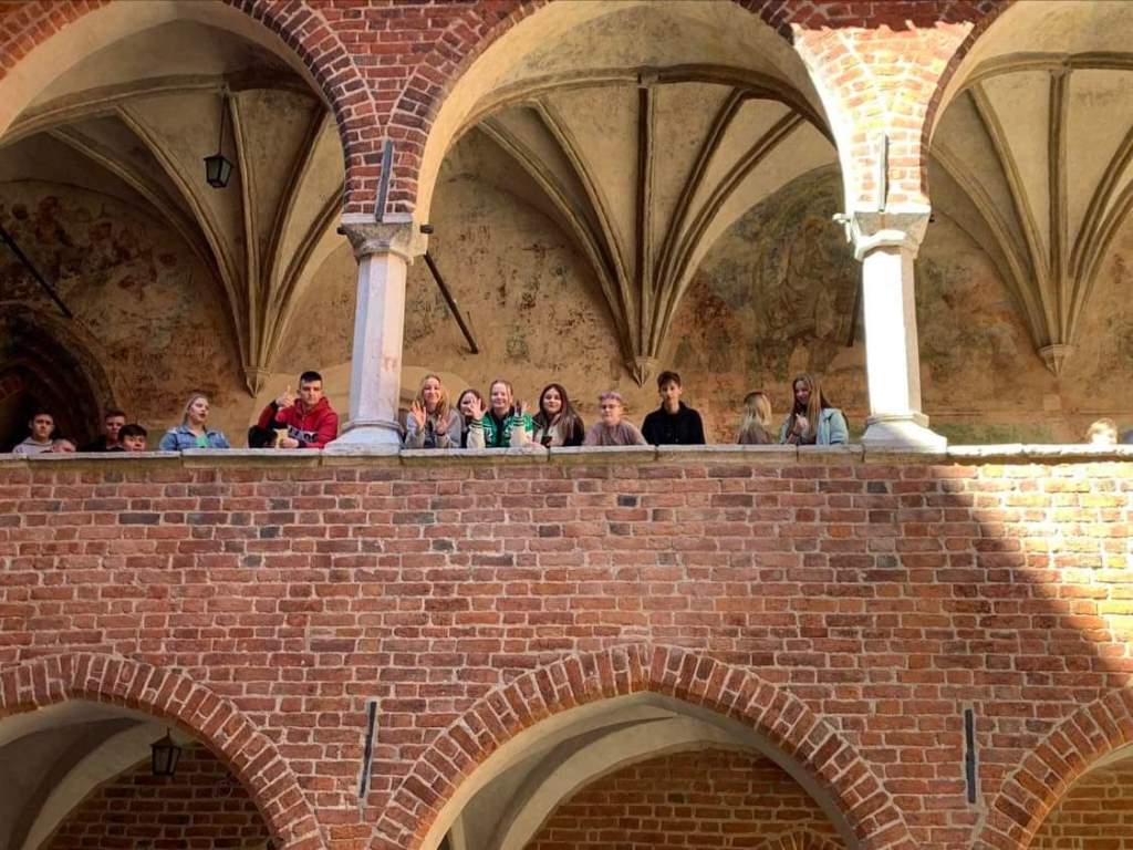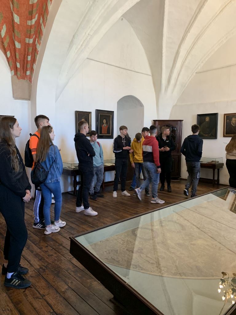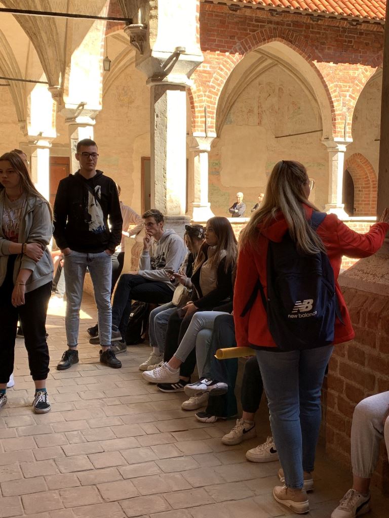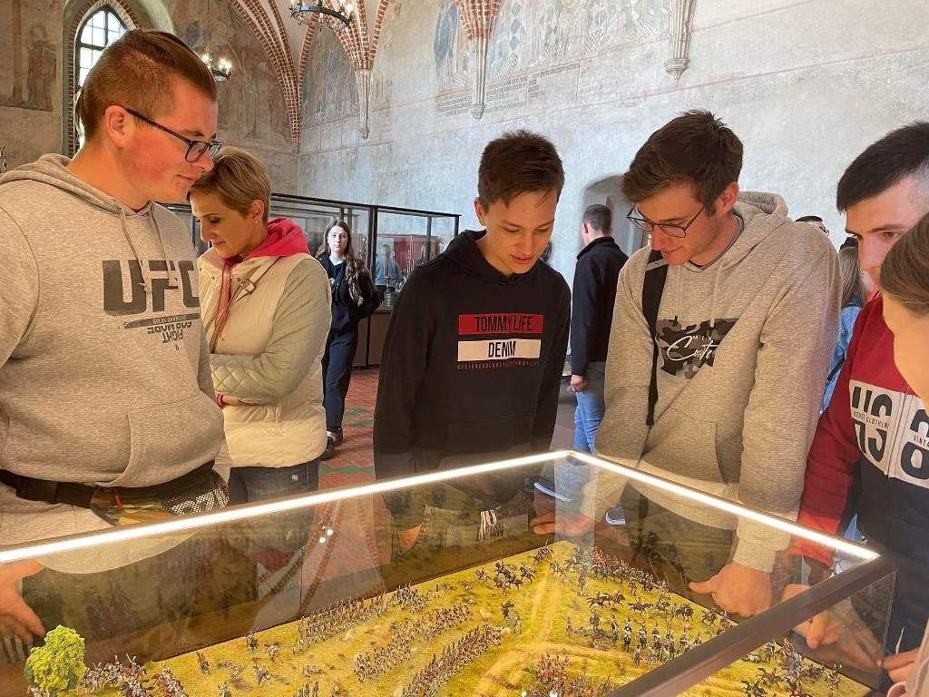 Podziwiając kwitnące rzepakiem pola i zielone łąki, dotarliśmy do Perły Warmii, czyli Lidzbarka Warmińskiego. Tam zwiedziliśmy zamek – dawną siedzibą biskupów warmińskich. Ostatnim urzędującym biskupem był słynny polski poeta doby oświecenia – Ignacy Krasicki. Zamek jest cennym zabytkiem architektury gotyckiej w naszym kraju, a od 2018 roku został uznany za pomnik historii. Wszyscy zachwycili się Wielkim Refektarzem z ekspozycją gotyckich rzeźb i kaplicą zamkową z wystrojem w stylu rokoko. Zainteresowanie wzbudziły także lochy i piwnice, w których dawniej były składy żywności oraz przetrzymywano więźniów.