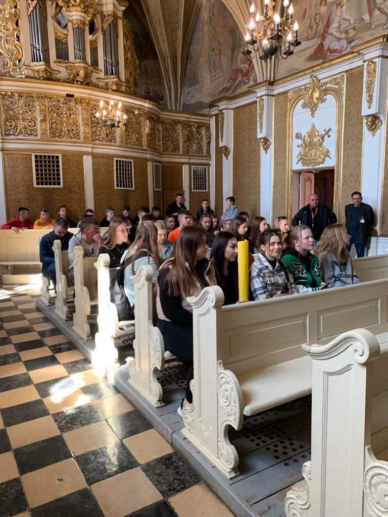 Następnym etapem wyprawy było barokowe sanktuarium maryjne w Świętej Lipce. Świętolipska Bazylika Nawiedzenia Najświętszej Maryi Panny z obejściem krużgankowym i klasztorem wzbudziła zachwyt wszystkich zwiedzających. Wysłuchaliśmy historii tego miejsca, podziwiając wnętrze i bogate zdobienia. Zachwyciły nas organy z ruchomymi figurkami. Skorzystaliśmy z możliwości i wysłuchaliśmy koncertu organowego. Po chwili odpoczynku i obiedzie w miejscowej restauracji udaliśmy się w dalsza podróż.