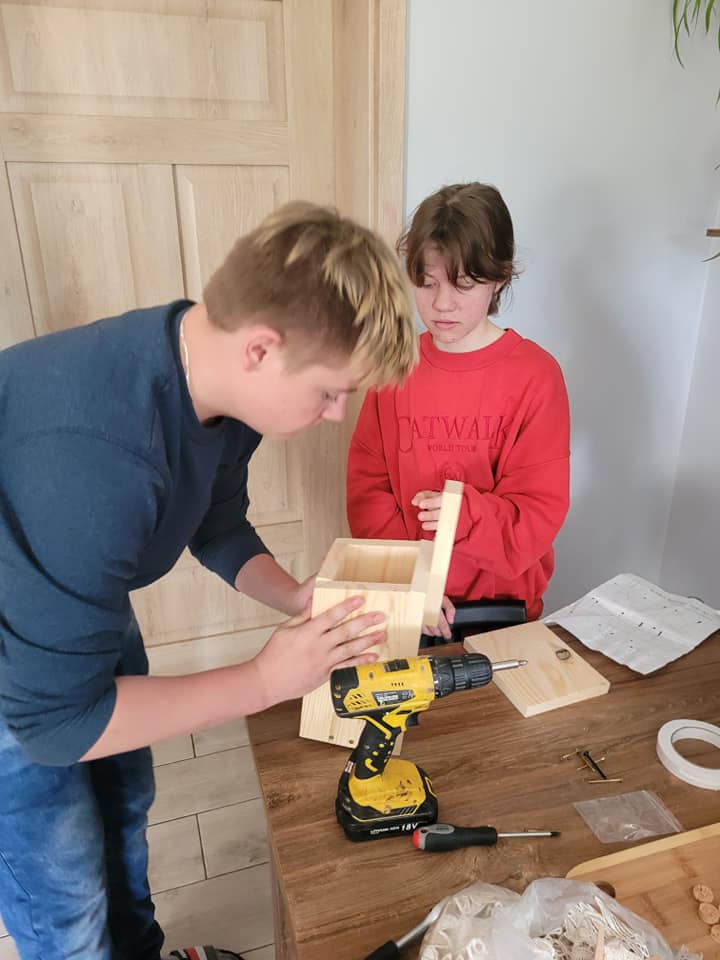 W ramach projektu "Rok z przyrodą" 23 maja br. w Placówce Opiekuńczo-Wychowawczej "Zakątek" w Zielonce Pasłęckiej odbyły zajęcia stolarsko artystyczne.