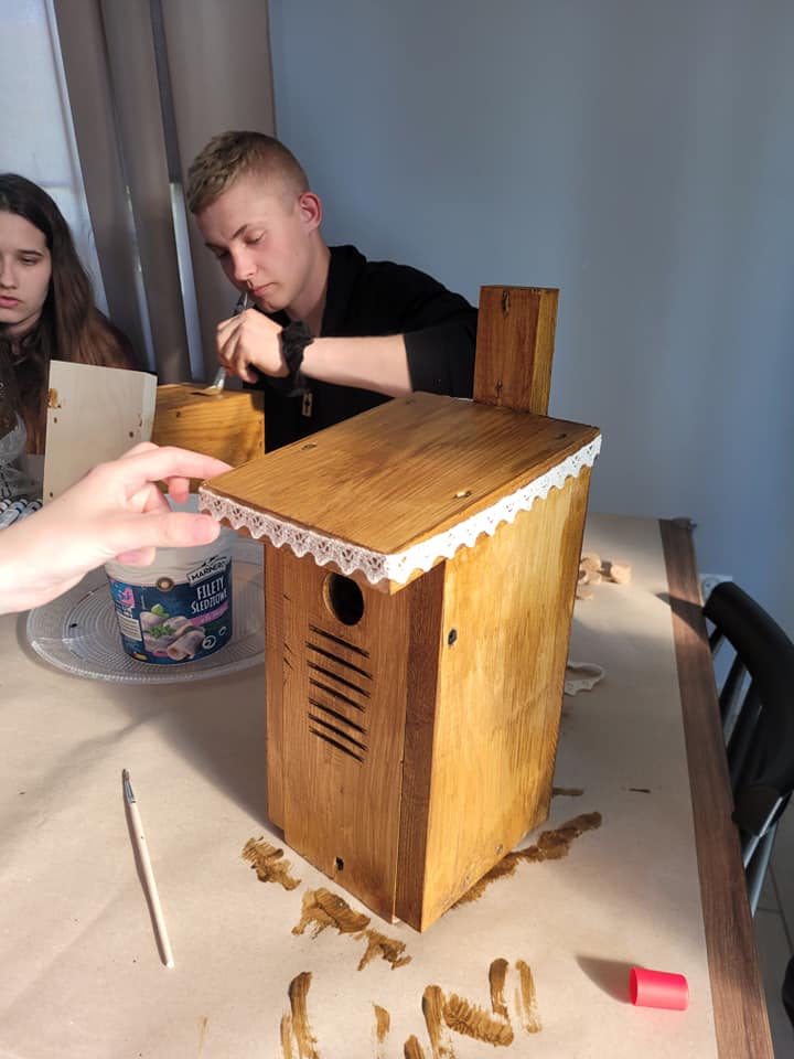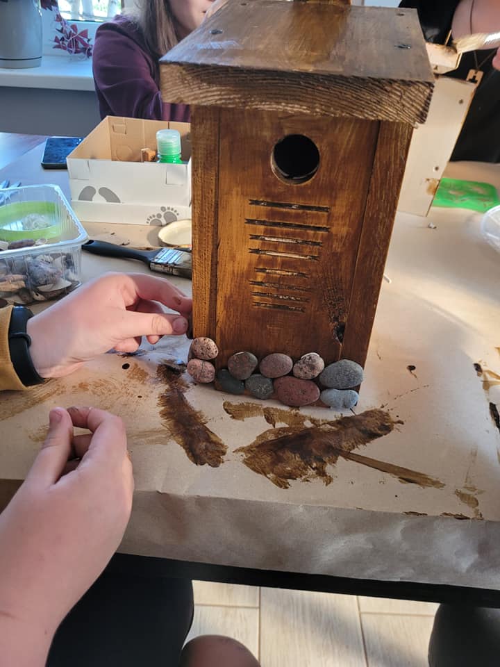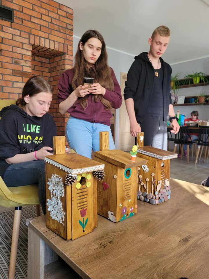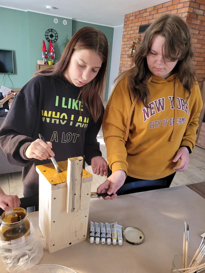 Zadaniem dzieci było samodzielne złożenie i ozdobienie budek lęgowych dla ptaków.