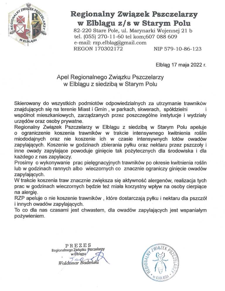 Apel Regionalnego Zwizku Pszczelarzy w Elblgu zs w Starym Polu 1