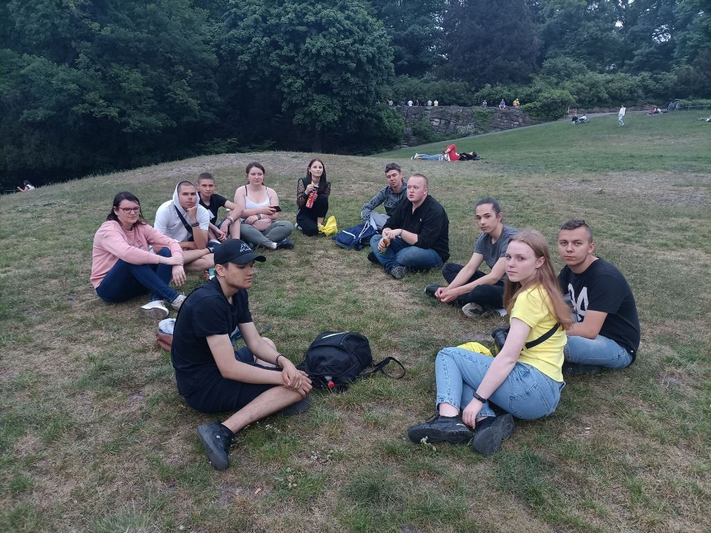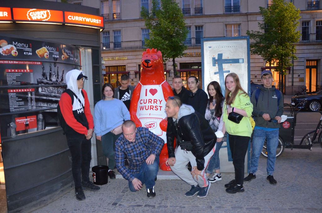 Wieczorne spacery stały się tradycją, aby po długim wyczerpującym dniu pracy zanurzyć się w zgiełku wielkiego miasta, poobserwować ludzi i trochę się zrelaksować. W czasie wolnym młodzież miała okazję poznać urokliwe miejsca i strategiczne punkty Berlina oraz spróbować specjałów takich jak: Currywurst, ale i słynnego kebaba, w najbardziej znanym stoisku tureckim „Mustafa’s Gemϋse Kebap”, przy którym do późna w nocy ustawiają się tam tak ogromne kolejki, o czym uczniowie przekonali się na własnej skórze. Alexanderplatz i ulica Unter den Linden nie mają już przed nimi żadnych tajemnic. Te punkty były niejednokrotnie przez uczestników wyjazdu odwiedzane zarówno w dzień, jak i wieczorem. Natomiast weekend pozwolił na dogłębne poznanie Berlina, jego historii oraz przepięknych zabytków. Punktami na mapie zwiedzania były: Muzeum Historii Naturalnej, Muzeum Techniki, pomnik Pomordowanych Żydów Europy, Katedra Berlińska, z której Berlin był podziwiany z lotu ptaka oraz Checkpoint Charlie - najsłynniejsze przejście graniczne między wschodnim a zachodnim Berlinem. Nie mogło zabraknąć oczywiście pamiątkowego zdjęcia przed Bramą Brandenburską, a gmach parlamentu Rzeszy – Reichstag z pewnością będzie już przez wszystkich rozpoznawalny.