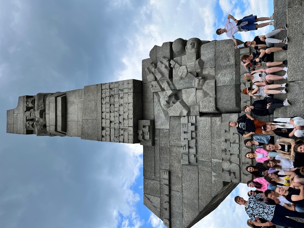Po obiedzie i krótkim spacerze wzdłuż Motławy i ulicy Długiej młodzież przemieściła się na Pole Bitwy na Westerplatte - symbolicznego miejsca waleczności i patriotyzmu. W towarzystwie przewodnika uczniowie poznali prawdy i mity związane z obroną Westerplatte i jej bohaterami dowodzonymi przez majora Henryka Suchodolskiego. Na pewno dużo przemyśleń wywołał znajdujący się tam napis „NIGDY WIĘCEJ WOJNY”.