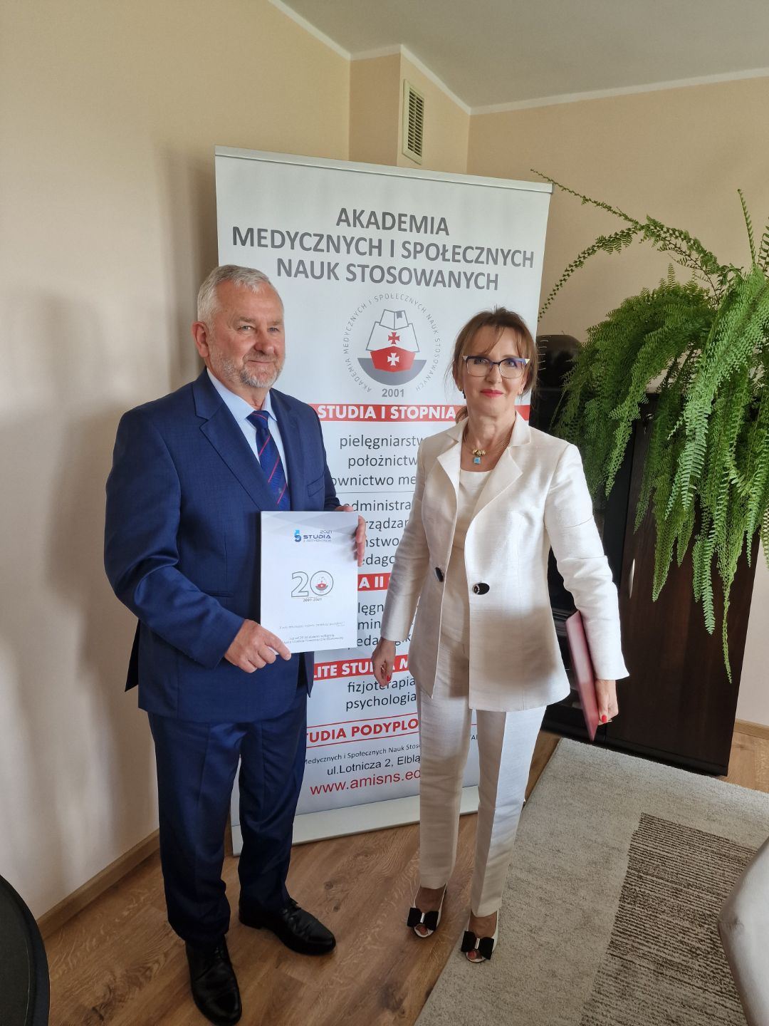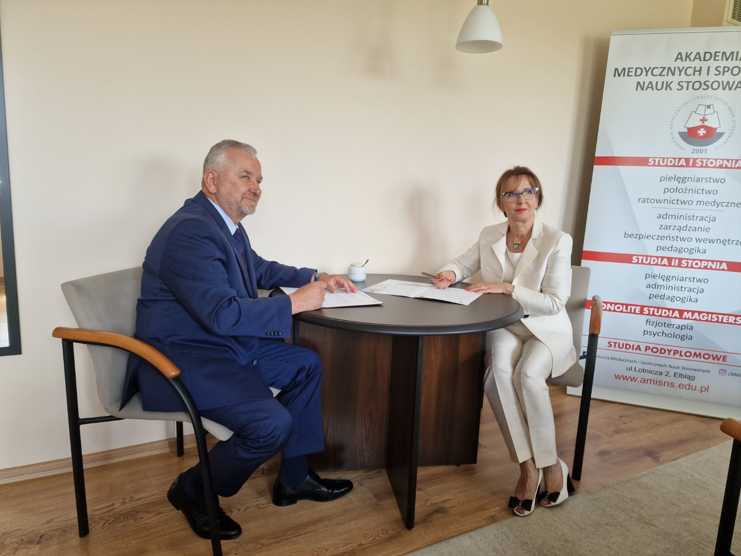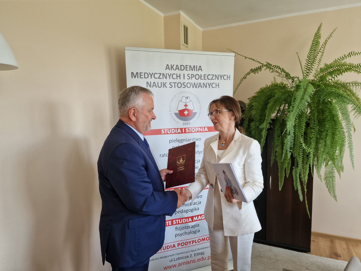 14 lipca 2022 roku zostało zawarte porozumienie o współpracy pomiędzy Akademią Medycznych i Społecznych Nauk Stosowanych w Elblągu, reprezentowaną przez dr Magdalenę Dubiella-Polakowską, prof. AMiSNS - Rektora a Starostwem Powiatowym w Elblągu, reprezentowanym przez Macieja Romanowskiego – Starostę Elbląskiego.