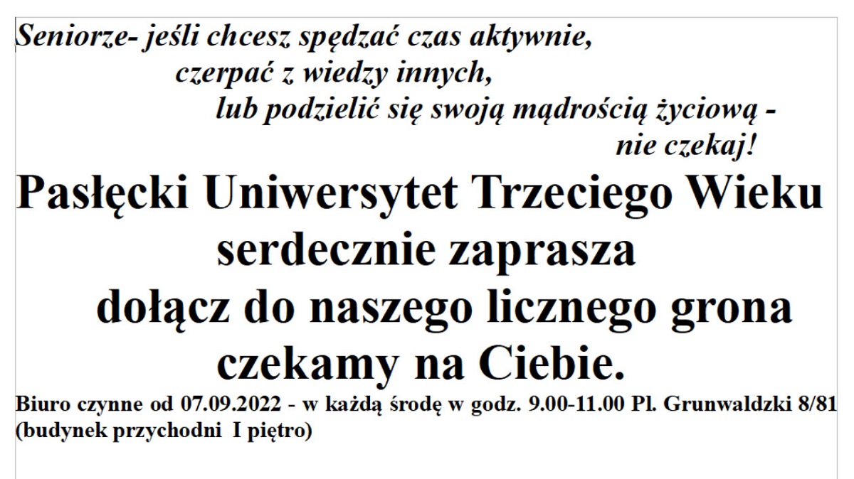Serdecznie zapraszamy wszystkich słuchaczy i sympatyków na inaugurację roku akademickiego 2022-2023.
