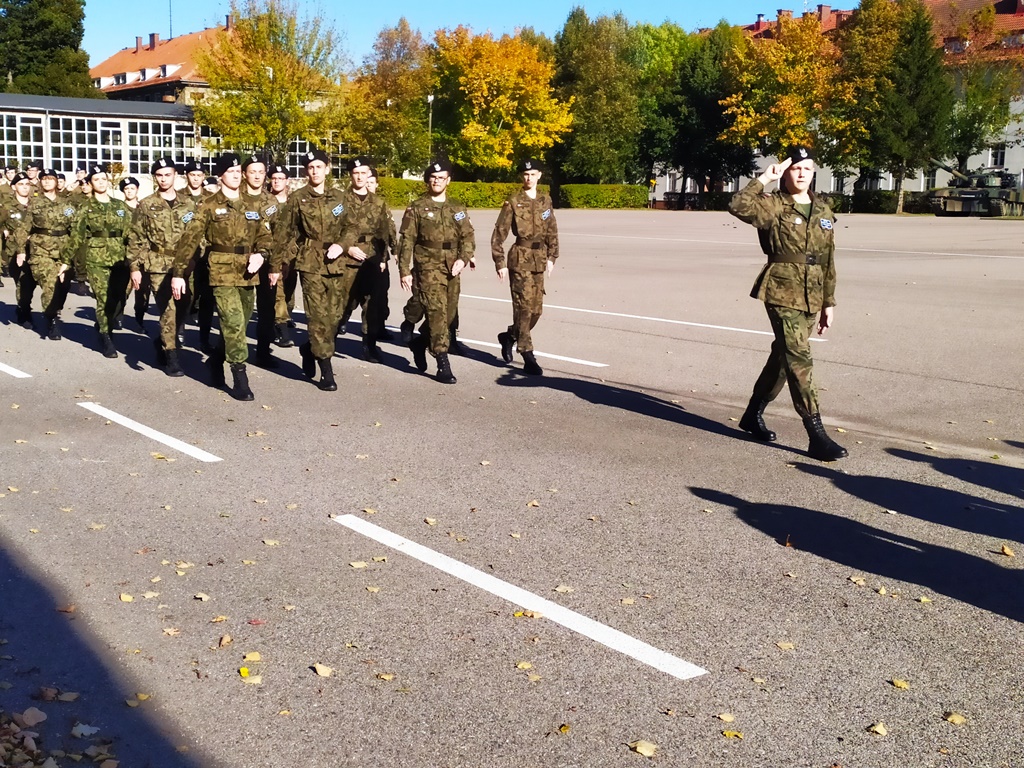 Programowe szkolenie odbywało się zgodnie z planem. I tak w poniedziałek, 03.10.2022 r. kadeci wzięli udział w spotkaniu z Dowódcą 9 BBKPanc. płk. Sławomirem LIDWĄ. Następnie kustosz Sali Tradycji przypomniał zebranym o historii powstania Brygady i tradycji oręża polskiego, jakie dziedziczy po sławnych jednostkach, czyli pułkach ułanów - Nowogródzka Brygada Kawalerii. We wtorek, po pobudce o godz. 6.00 i odbyciu zaprawy porannej, zgodnie z porządkiem dnia kadeci wzięli udział w szkoleniu strzeleckim na przykoszarowym placu ćwiczeń 9 BBKPanc., gdzie odbyli strzelanie z karabinku pneumatycznego. Wśród kadetów zwyciężył Bartłomiej MRÓZ /30 pkt. na 30 możliwych/, natomiast spośród kadetek najlepsza okazała się Natalia DOMAŃSKA /24 pkt. na 30 możliwych/. Potem, na placu musztry odbyła się próba do święta Brygady. Po obiedzie na kadetów czekała hala sportowa lub miejski basen. Kolejnego dnia, w środę kadeci brali udział w szkoleniu SERE - podstawy poziomu A, czyli sztuka przetrwania i bytowania na terenie zajętym przez przeciwnika. Zadanie polegało na odszukaniu i ewakuacji swoich rannych kolegów z plutonu. Zwyciężyła drużyna „Kreciki” pod dowództwem Oliwii Kujawskiej. Następnie odbyła się próba generalna do święta Brygady, a po obiedzie, tradycyjnie - hala sportowa lub basen. W czwartek kadeci zapoznali się z blokiem szkolenia, w tym ze słynną tzw. „sala talibską” a następnie wzięli udział w szkoleniu na tzw. „punktach nauczania” przy strzelnicy pistoletowej. Ostatniego dnia pobytu w jednostce odbywały się uroczystości zorganizowane z okazji święta Brygady. Uroczysty apel, przejęcie tradycji kawaleryjskich, wyróżnienia i podziękowania, a także dzień otwartych koszar, pokazy sprzętu i wyszkolenia żołnierzy oraz żołnierska grochówka – tak w wielkim skrócie wyglądały obchody 28. rocznicy powstania 9 Braniewskiej Brygady Kawalerii Pancernej.Kadeci ZSEiT w swoich mundurach prezentowali się bardzo dobrze i wzbudzali duże zainteresowanie, zwłaszcza podczas defilady wśród mieszkańców Braniewa i zaproszonych gości, w tym Dyrektor szkoły pani Lidii ZAWRCZYŃSKIEJ, która po zakończeniu defilady złożyła Dowódcy Brygady panu pułkownikowi Sławomirowi LIDWIE życzenia i okolicznościowy grawerton.