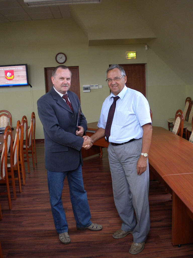 W dniu 9 sierpnia 2011 r. na posiedzeniu Zarządu Powiatu w Elblągu Starosta Elbląski Sławomir Jezierski uroczyście wręczył list gratulacyjny Panu Feliksowi Wiśniewskiemu pracownikowi Starostwa za pozytywne wyniki kontroli problemowej i planowania obronnego w powiecie.