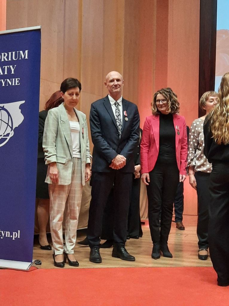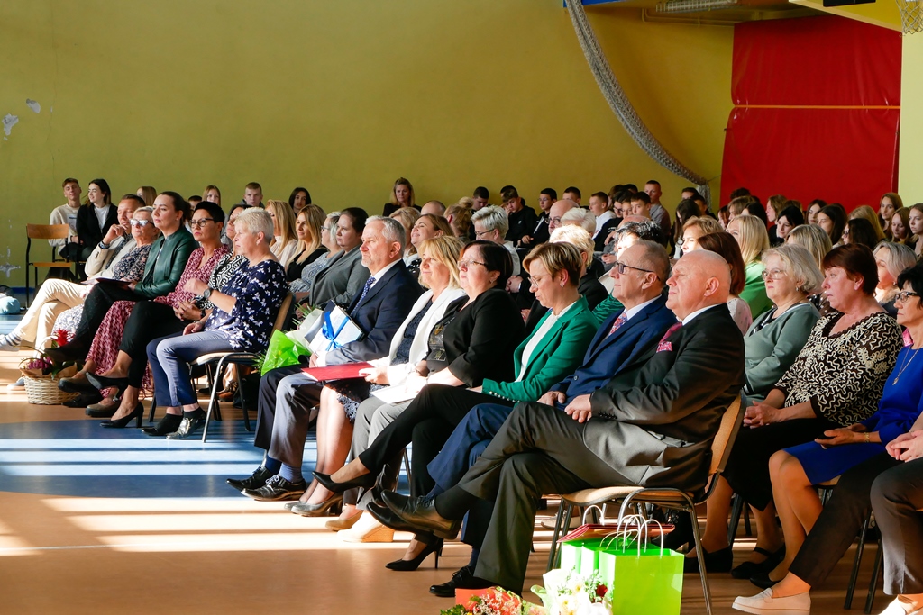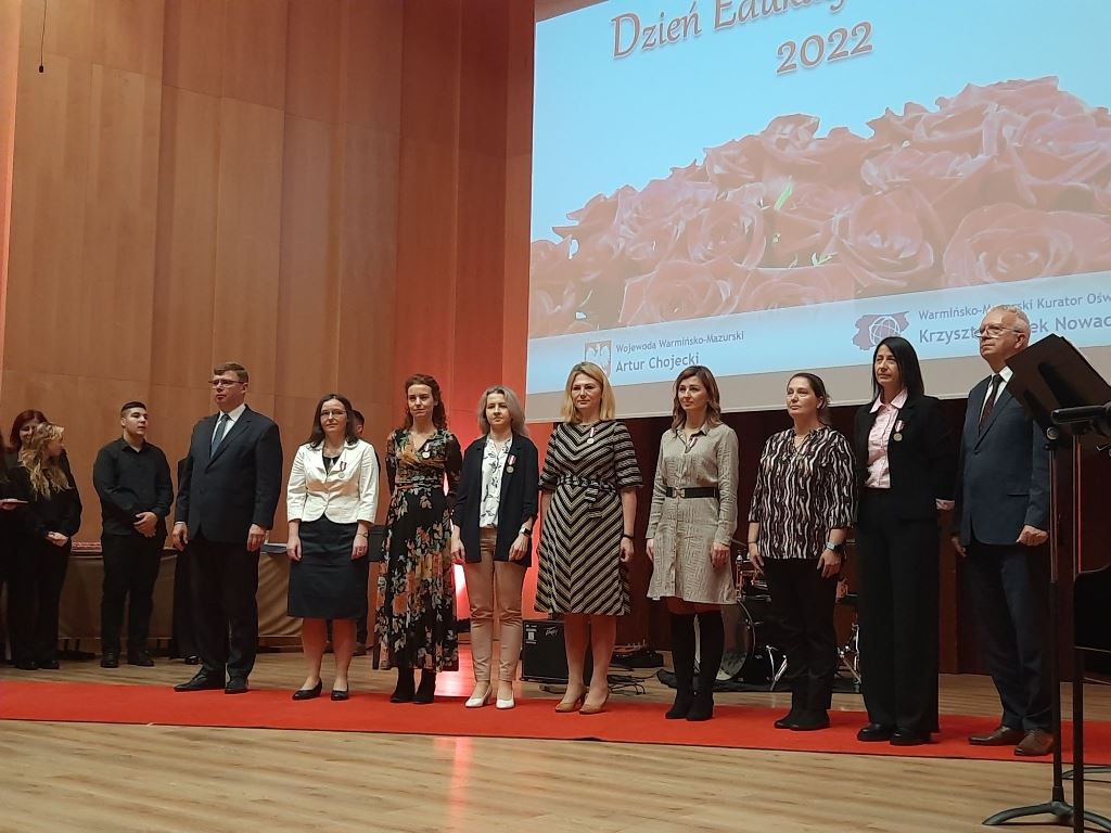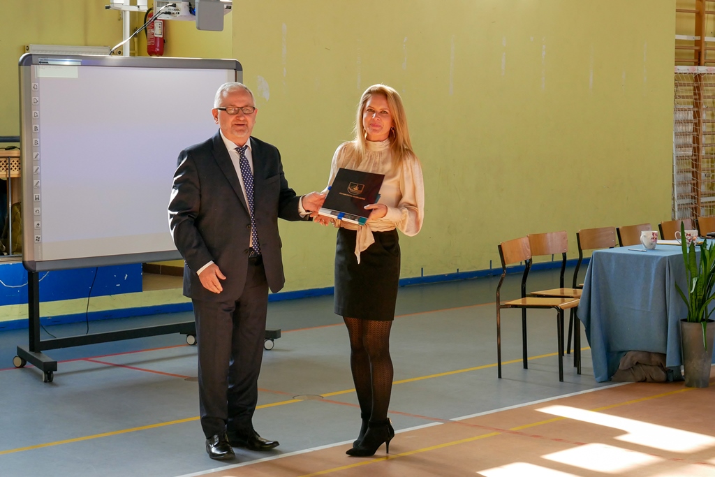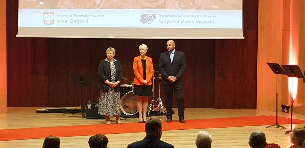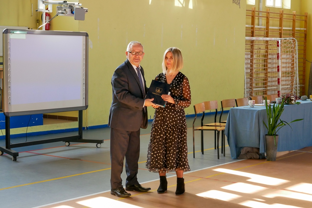 Obchody Dnia Edukacji Narodowej w Zespole Szkół w Pasłęku trwały w tym roku szkolnym wyjątkowo długo. Rozpoczęły się w czwartek 13 października uroczystym apelem, a zakończyły we wtorek 18 października uroczystością wręczenia medali i odznaczeń w Elblągu. Tradycji stało się zadość i apel szkolny odbył się w obecności zacnych gości – starosty elbląskiego Macieja Romanowskiego, burmistrza Pasłęka Wiesława Śniecikowskiego i wiceprzewodniczącej Rady Rodziców Joanny Domerackiej. Wszyscy zaproszeni goście wyrażali swoją wdzięczność dla nauczycieli oraz pracowników administracji i obsługi za pracę na rzecz oświaty. Starosta Maciej Romanowski wręczył dwie nagrody wyróżniającym się nauczycielom – nauczycielce języka angielskiego Sylwii Janiszewskiej oraz nauczycielce biologii Marcie Puławskiej. Burmistrz Pasłęka Wiesław Śniecikowski podziękował natomiast szczególnie trzem nauczycielom szkoły, którzy angażują się społecznie na rzecz mieszkańców miasta i gminy Pasłęk – Mariuszowi Ficakowi, Tomaszowi Tuniewiczowi oraz Tomaszowi Rozenbajgierowi. Dyrektor szkoły Elżbieta Wasiuk podziękowała za obecność na apelu emerytowanym nauczycielom szkoły z byłym dyrektorem Edwardem Skalijem i wicedyrektor Jadwigą Seroką na czele. Oprócz słów podziękowań, wręczyła także nagrody niektórym członkom kadry pedagogicznej oraz administracji i obsługi szkoły. Część artystyczną przygotowała klasa II A LO, która pod kierunkiem wychowawczyni Sylwii Janiszewskiej, zaprezentowała w humorystyczny sposób posiedzenie rady pedagogicznej. Długi weekend część pracowników szkoły świętowała na wycieczce w Łodzi, natomiast ostatnim etapem uroczystości było wręczenie medali i odznaczeń, które odbyło się 18 października w Elblągu. Postanowieniem Prezydenta RP Andrzeja Dudy, a na wniosek ministra edukacji i nauki wyróżnieni zostali: brązowym krzyżem zasługi – Jacek Matukiewicz, medalem złotym za długoletnią służbę – Aleksandra Szymańska i Bogdan Szymański, medalem srebrnym za długoletnią służbę – Anna Chwaszcz, Oksana Mazuryk i Agnieszka Wojczys, medalem brązowym za długoletnią służbę – Dorota Dragan, Joanna Majewska i Anna Marek-Cytrycka. Z kolei najwyższe odznaczenie resortowe, czyli Medal Komisji Edukacji Narodowej za szczególne zasługi dla oświaty i wychowania, odebrali: Marzena Konupek, Aleksandra Szymańska, Bogdan Szymański, Tomasz Rozenbajgier i Stefan Wasiuk. Na końcu należy również nadmienić, iż uczniowie Zespołu Szkół w Pasłęku z Samorządem Szkolnym na czele również pamiętali o swoich nauczycielach, którym składali życzenia i wręczali drobne upominki. Grono Pedagogiczne dziękuje wszystkim za ciepłe słowa kierowane pod adresem naszej grupy zawodowej, zrozumienie naszych potrzeb i docenienie trudnej pracy, jaką każdego dnia wykonujemy na rzecz młodego pokolenia.