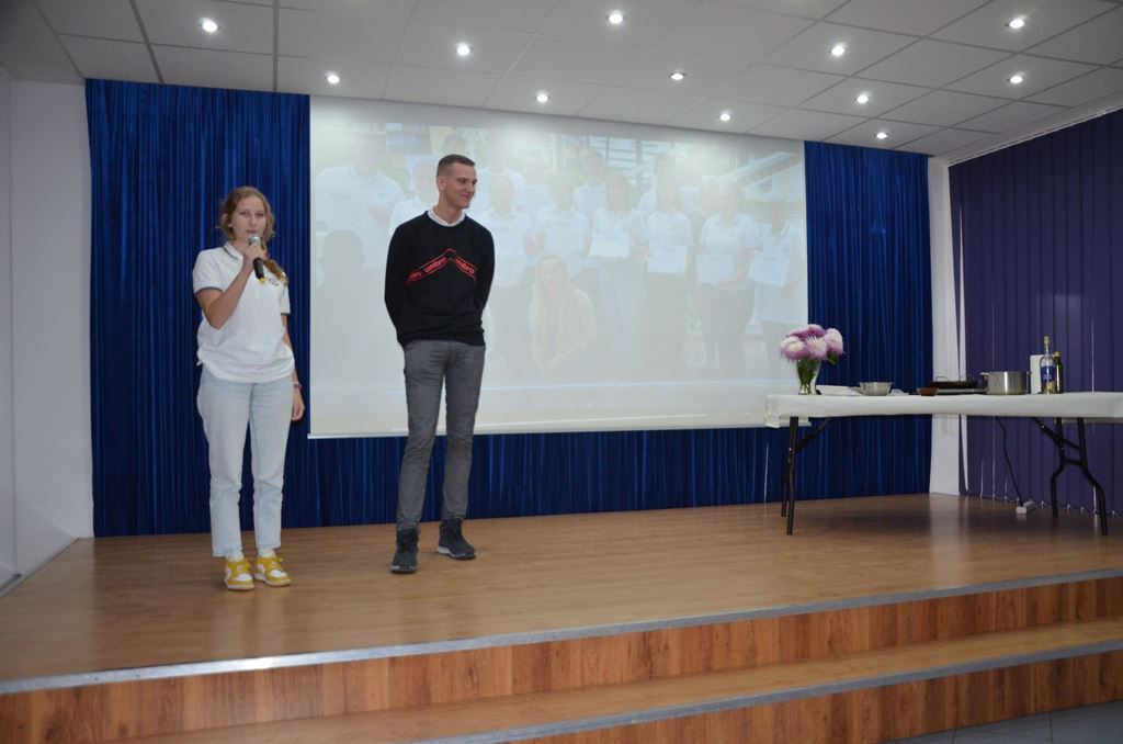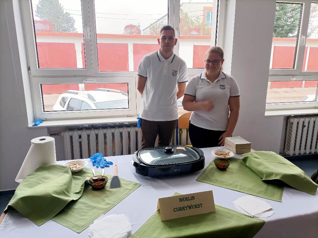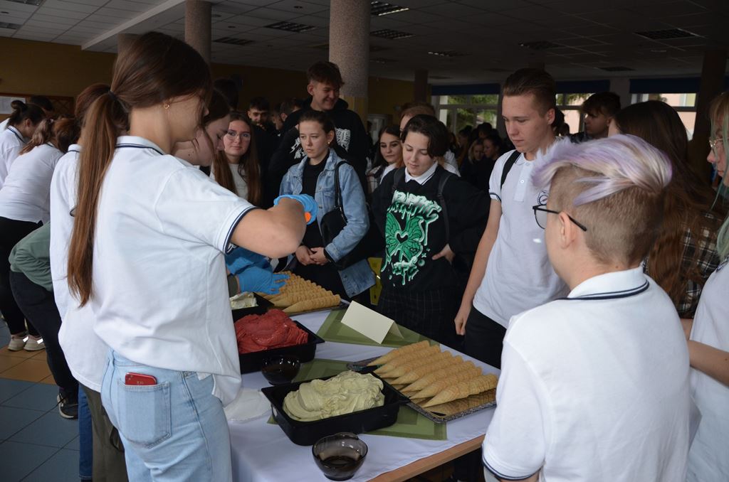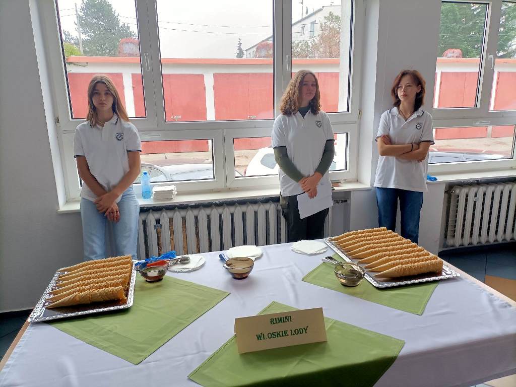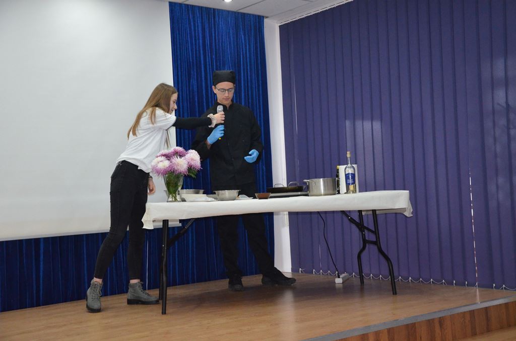 Z tej okazji 29 uczestników projektu zaprezentowało szkolnej społeczności korzyści płynące z ich udziału w zagranicznych mobilnościach w postaci filmików, osobistych i emocjonujących relacji z pobytu oraz przygotowanego poczęstunku, który składał się z typowych dań kuchni włoskiej, niemieckiej i hiszpańskiej. Młodzież przygotowała Currywurst oraz paellę, odtwarzając smaki, które miała okazję poznać podczas swoich dwutygodniowych praktyk. Uczniowie serwowali również przepyszne włoskie lody. Jedną z atrakcji było gotowanie na żywo. Michał, uczestnik stażu z Hiszpanii, gotując potrawę na scenie, zaprezentował obecnym gościom sposób przygotowania paelli z owocami morza.