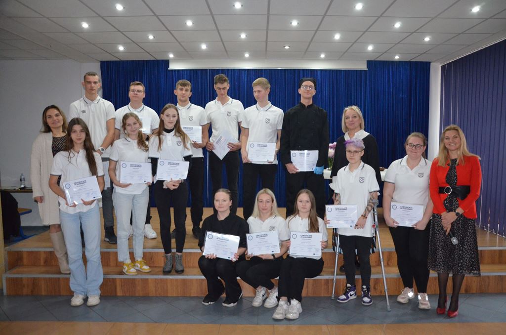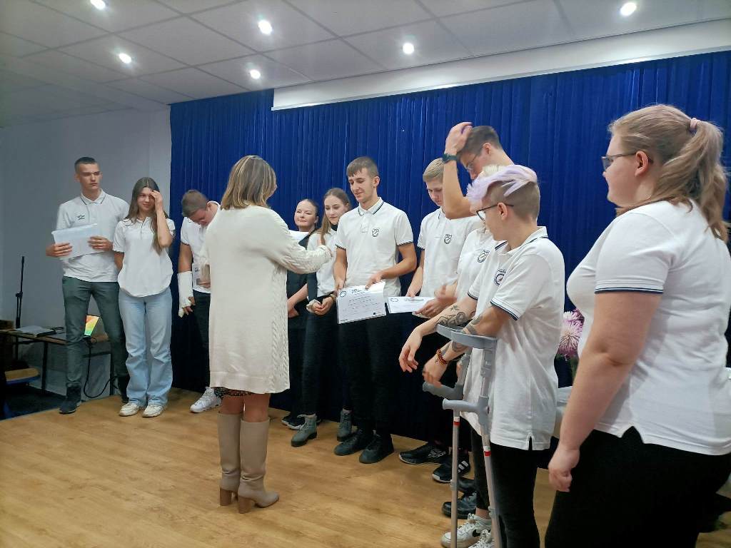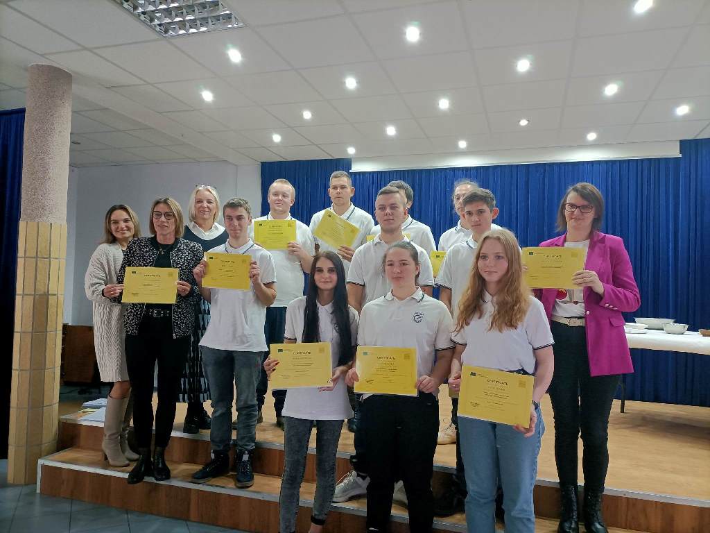 Finalnym punktem spotkania było wręczenie uczniom certyfikatów uczestnictwa oraz europejskiego dokumentu Europass przez wicedyrektor Lidię Zawarczyńską, która pogratulowała młodzieży niezapomnianych przeżyć i zdobytych doświadczeń.