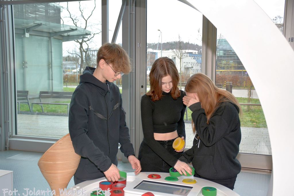 Pierwszym punktem programu była wizyta w Centrum Nauki Eksperyment w Gdyni. Uczniowie, podzieleni na grupy, poznawali tajniki ludzkiego organizmu. Pod okiem edukatorów mikroskopowali, wykonywali doświadczenia ukazujące m.in. sposoby analizowania próbek krwi, wykazywali się kreatywnością w rozwiązywaniu problemów technicznych i nieźle nagłowili, zanim zbudowali most Leonarda. Po pasjonujących zajęciach i zabawach na przygotowanych stacjach uczniowie pojechali do Gdańska. Zwiedzając wystawę w towarzystwie przewodnika, z zainteresowaniem wysłuchali barwnych i przejmujących opowieści o pierwszych dniach wojny w Wolnym Mieście, o poświęceniu i bohaterstwie obrońców Poczty Polskiej.