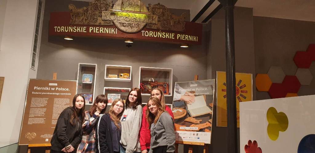 Pierwszą atrakcją była wizyta w Planetarium, gdzie uczestnicy wycieczki na seansie filmowym pt. Makrokosmos wyświetlanym na suficie, przeżyliwirtualną podróż po Wszechświecie. Niezwykłe animacje ukazały Ziemię jako drobinę zawieszoną w wielowymiarowej przestrzeni. „Makrokosmos” poszerzył wyobraźnię i wiedzę uczestników o Kosmosie oraz dostarczył im niezapomnianych wrażeń. Drugim punktem wycieczki był spacer po Starym Mieście, które jest sercem Torunia. Uczniowie podziwiali gotycką architekturę tego miejsca. Na Rynku Staromiejskim rozpoczął się Toruński Jarmark Bożonarodzeniowy, który wprowadził wszystkich w świąteczny klimat. Uczniowie kupowali pamiątki z Torunia i gwiazdkowe upominki. Następnie zjedliśmy obiad na starym mieście w dość nowoczesnym, znanym i lubianym przez młodzież barze szybkiej obsługi. Ostatnim punktem naszej wycieczki było spacer ulicą Szeroką do ulicy Rabiańskiej, gdzie mieści się Żywe Muzeum Piernika. Uczniowie poznali tradycje związane z wypiekiem piernika i pod okiem Mistrza piernikarskiego, każdy sam wyrabiał i przygotował w drewnianej formie ciasto, by wypiec z niego toruński specjał. Każdy piernik został indywidualnie oznaczony. Wszyscy świetnie się bawili na warsztatach. Kiedy pierniki się piekły uczestnicy zwiedzali Muzeum, a kto chciał mógł zakupić w manufakturze oryginalne toruńskie pierniki dla rodziny. Na koniec odebraliśmy nasze wypieczone ciastka, bo przecież najlepszą pamiątką z Torunia jest własnoręcznie uczyniony piernik.