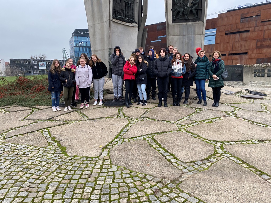 Po przyjeździe do Gdańska uczniowie zwiedzanie rozpoczęli od Placu Solidarności, Pomnika Poległych Stoczniowców i Bramy Stoczni Gdańskiej. Następnie uczniowie zwiedzili Europejskie Centrum Solidarności w Gdańsku. Tam szczegółowo zapoznali się z sytuacją społeczno-polityczną lat 80-tych XX wieku, kryzysem gospodarczym, stanem wojennym, działaniach MO, ZOMO i narodzinach związku zawodowego Solidarność.