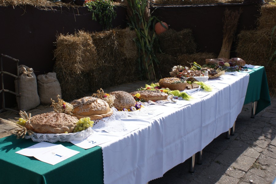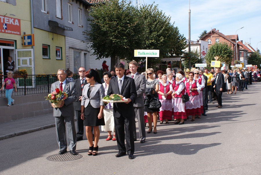Następnie wszyscy licznie zgromadzeni uczestnicy uroczystości dożynkowych podziwiali paradę orkiestry dętej „Helikon’’ z Kwidzyna. Starosta elbląski Sławomir Jezierski i burmistrz Tolkmicka Andrzej Lemanowicz dokonali oficjalnego otwarcia festynu dożynkowego. W ciepłych słowach podziękowali rolnikom za ich roczny trud i odebrali z rąk starościny dożynkowej Agnieszki Kaczorowskiej i starosty dożynkowego Stanisława Lecha chleb wypieczony z tegorocznych plonów.
